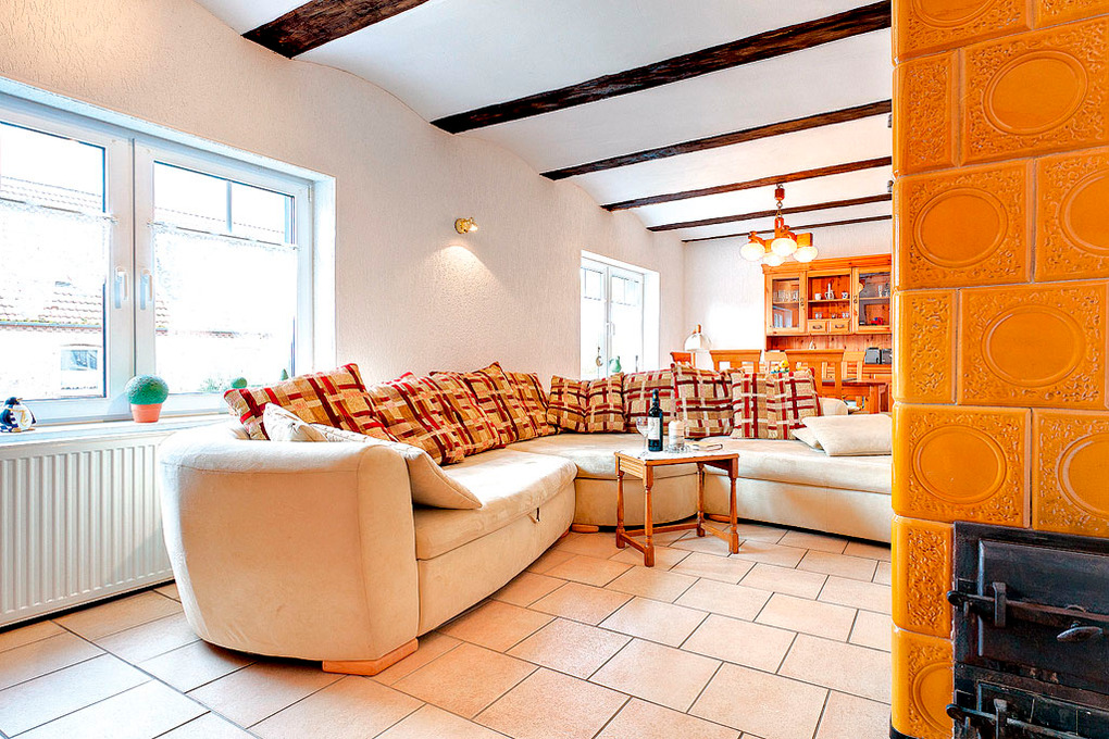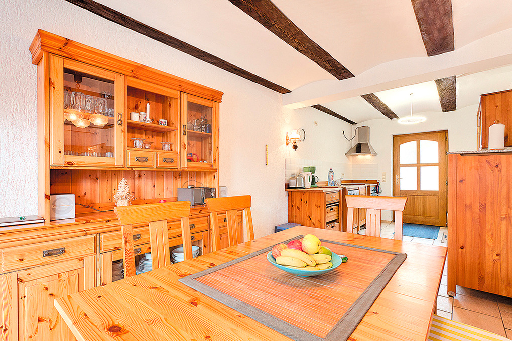 Haus: Gepflegtes Ferienhaus mit Kachelofen. Ansprechende Möblierung im Landhausstil. Nichtraucherhaus. Zentralheizung. Überdachte Terrasse mit Sitzmöbeln. Kleiner, eingezäunter Garten, zweite Sitzecke. 1 Pkw-Stellplatz im Carport.