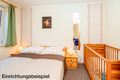D 45.23 Ferienhäuser 2-6 Pers.: Schöne 3-Zimmerhäuser mit ca. 44 qm Wohnfläche, Parterre. Wohn-/Essraum mit Kaminofen, Couchgarnitur (Ausziehcouch 2 Pers.), Sat-TV, Radio/CD, Esstisch, Küchenzeile (Backofen). Doppelzimmer mit Kinderbett. 2 Bettzimmer. Bad/WC.