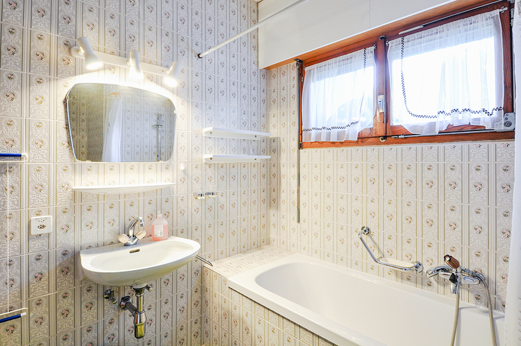 Ch 361.18 Wohnung 1-7 Pers.: 3-Zimmerwohnung mit 85 qm Wohnfläche, Parterre. Gemütlicher Wohn-/Schlafraum (25 qm) mit Sitzgruppe (2 Schlafsofas für je 1 Pers.), Kabel-TV, Esstisch. Küche mit Backofen, Spülmaschine. Flur mit Kleiderschränken. Doppelzimmer. 3-Bettzimmer mit 2 Einzelbetten, Zustellbett. Bad: Bw/Du, Wb, WC. Zusätzliche Dusche in der Schwimmhalle neben der Wohnung. Terrasse mit Sitzmöbeln, schönem Blick. Rasenfläche mit Ruheliegen.