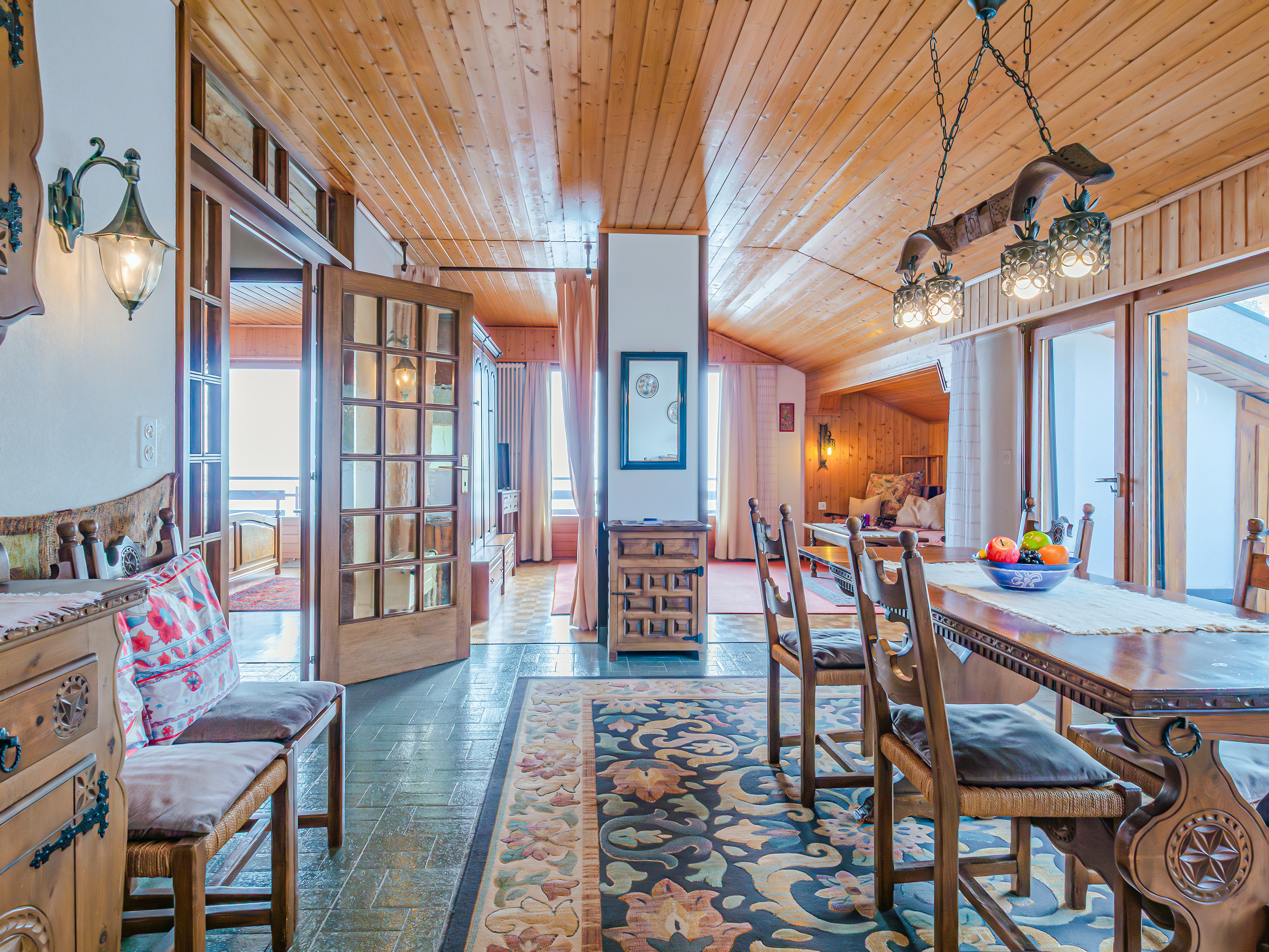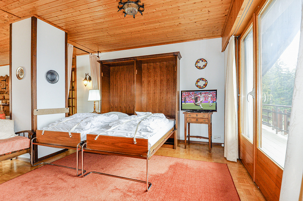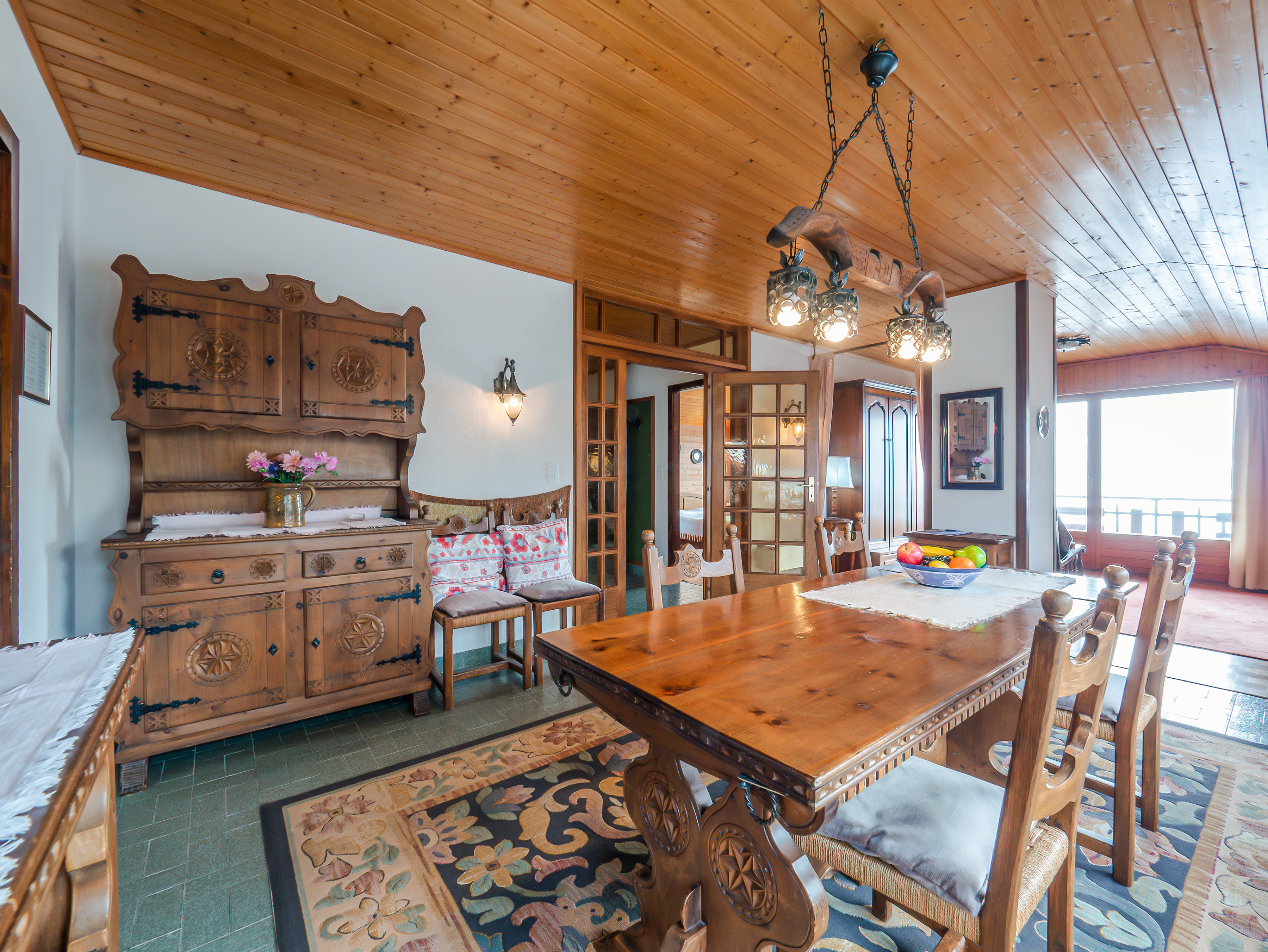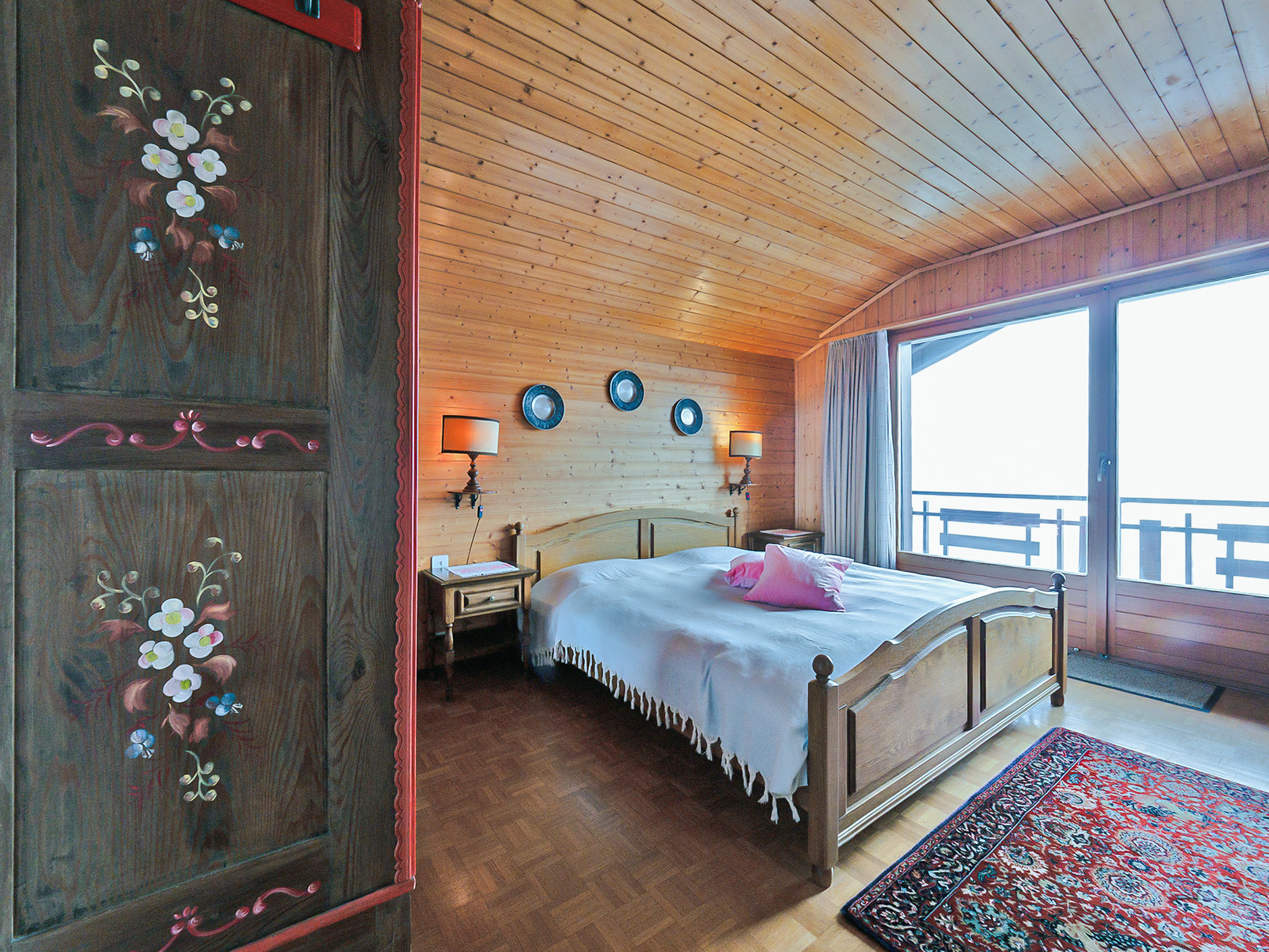 Haus: Großes regionaltypisches Chalet mit Schwimmbad und Sauna. Schönes Wohnhaus mit 2 Ferienwohnungen und der fest bewohnten Wohnung des Vermieters. Gemütliche Chalet-Atmosphäre durch Holzvertäfelungen in vielen Räumen. Im Haus: großes Schwimmbad (10 x 4,50 Meter, 24°C, kostenfrei nutzbar) mit Ruheliegen vor großen Panoramafenstern, Sauna (Gebühr), Duschen, WC. Buchbar sind die untere Etage des Hauses (CH 361.018) und eine separate Wohnung im ersten Stock (CH 361.019). Das gesamte Haus für bis zu 14 Personen kann auch unter der Nummer CH 361.020 gebucht werden (separate Anzeige).