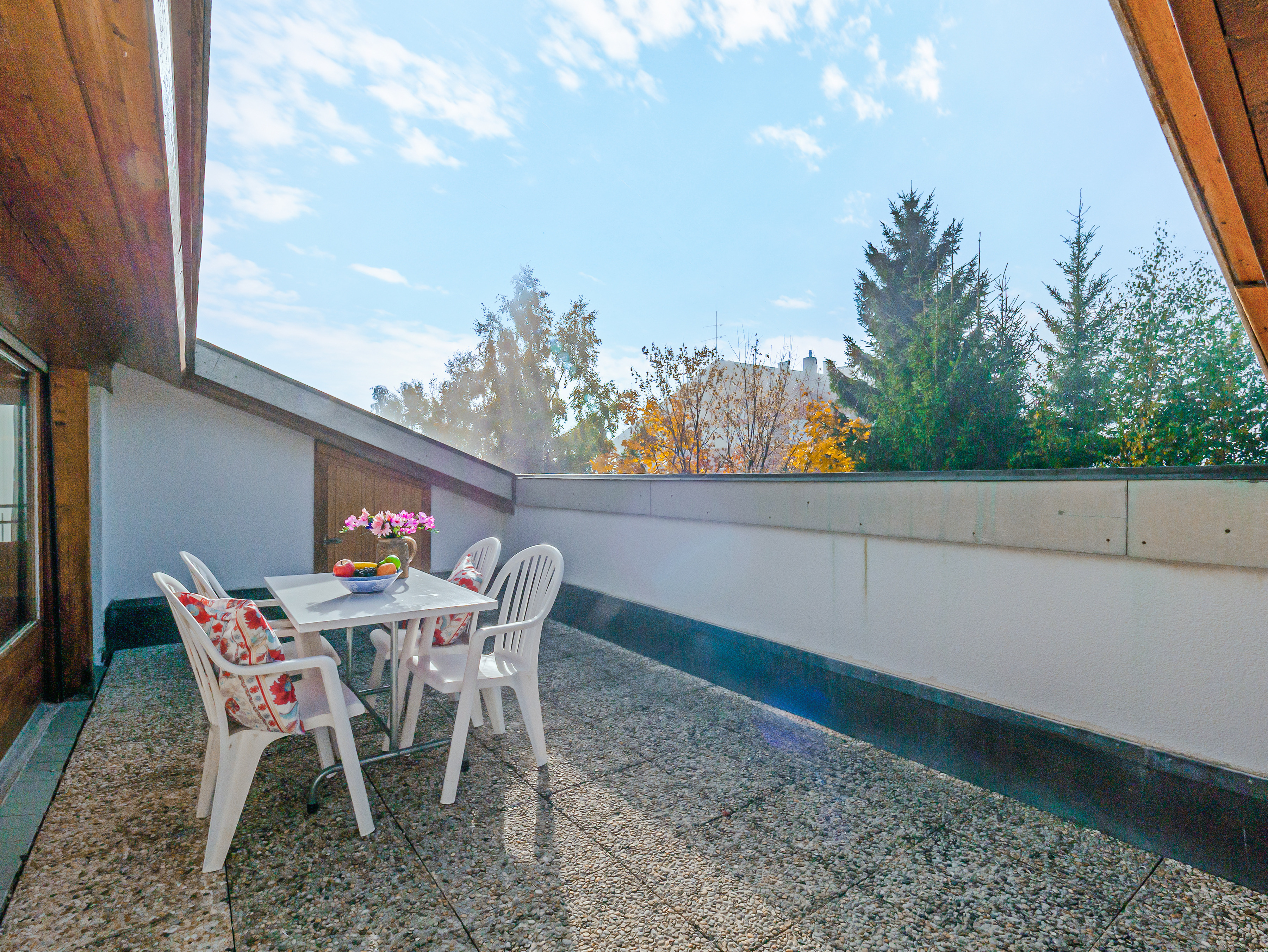 Ch 361.19 Wohnung 1-7 Pers.: 3-Zimmerwohnung mit 95 qm Wohnfläche, 2. Etage (leichte Dachschrägen). Flur mit Garderobe. Gemütlicher Wohnraum (40 qm) mit Wohn-/Schlafbereich (Sofa-Sitzgruppe, Kabel-TV, 2 komfortablen Schrankbetten, Balkon, herrlichem Blick ins Rhônetal). Freundlicher Essbereich mit Esstisch, Dachterrasse (Sitzmöbel). Küche mit Backofen, Mikrowelle, Spülmaschine. Doppelzimmer mit Balkon. 3-Bettzimmer mit 2 Einzelbetten, kleinem Zustellbett für Kinder (75 x 170 cm). Bad: Badewanne/Dusche, Waschbecken, WC, Bidet. Separates WC.