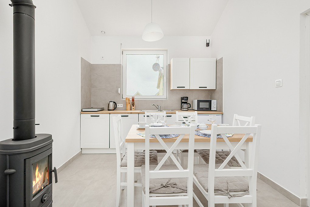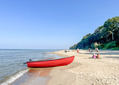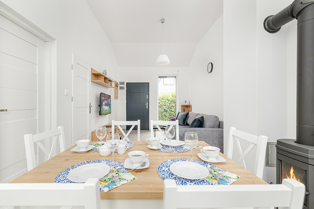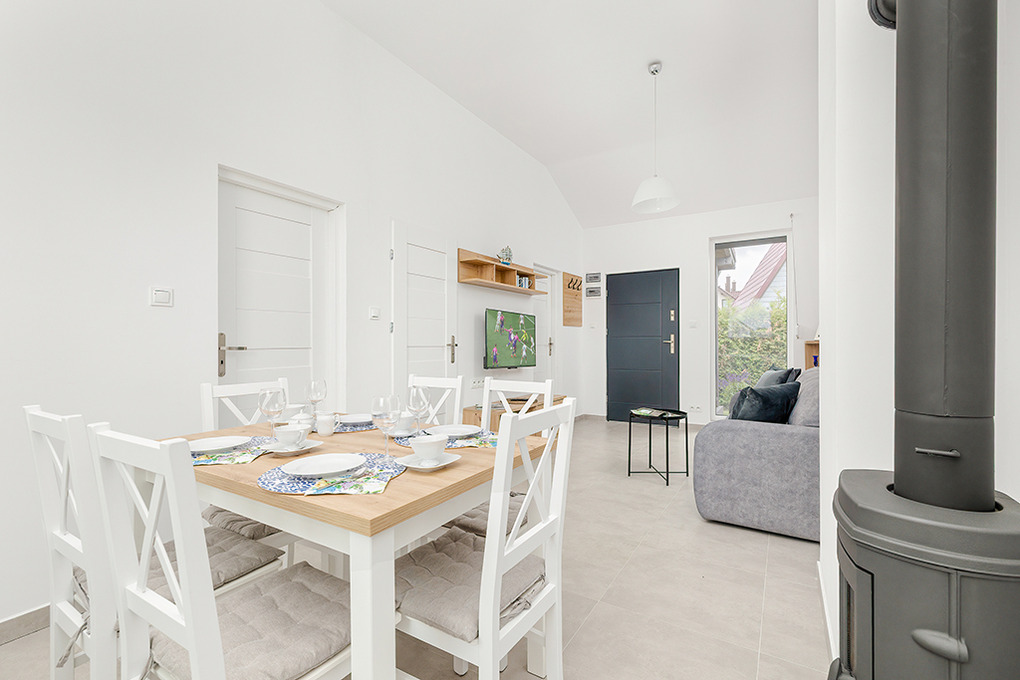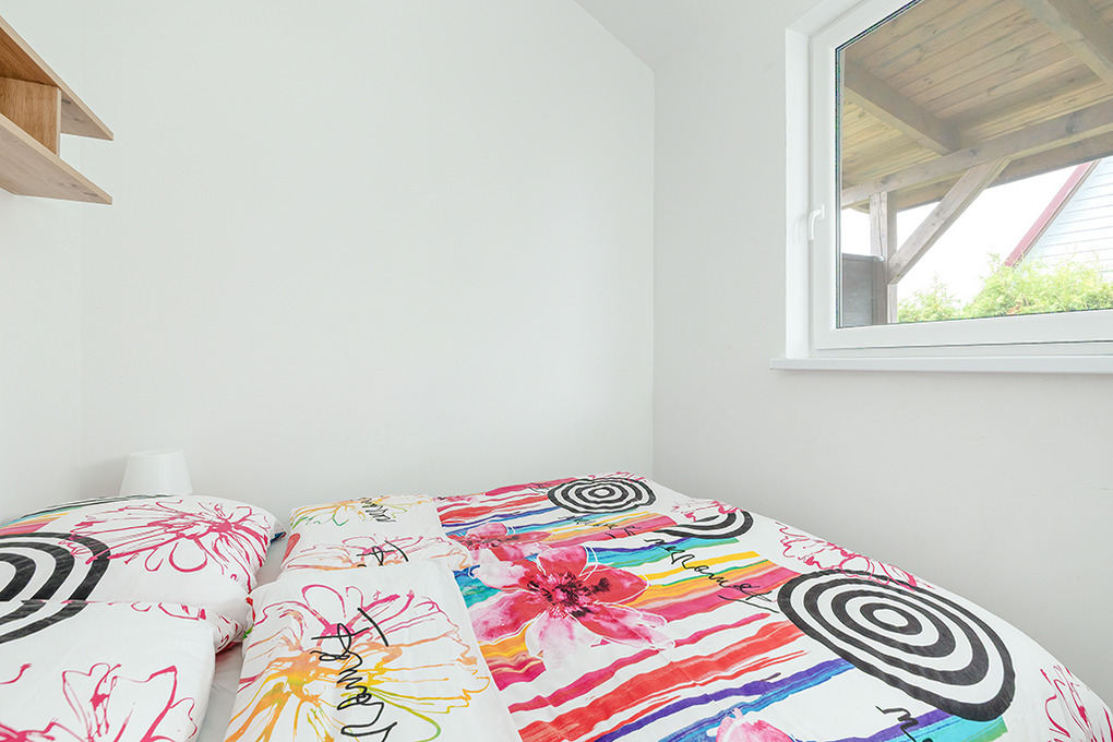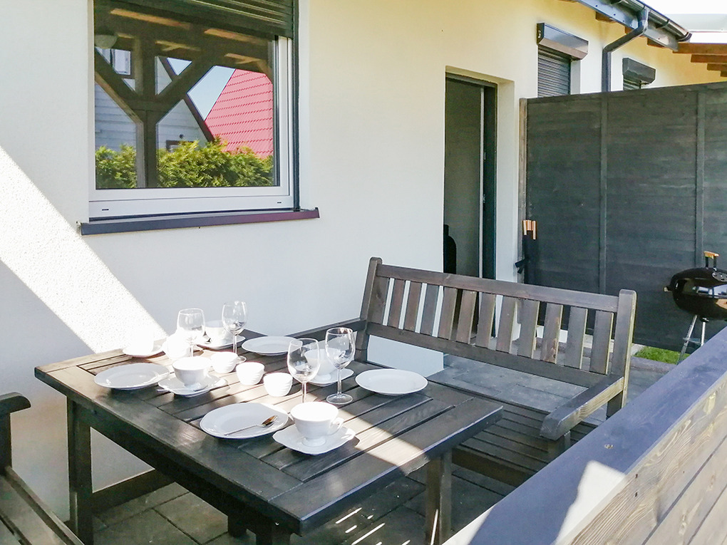 PL 57.14 Ferienhaus 2-4 Pers.: Freundliches 3-Zimmerhaus mit ca. 40 qm Wohnfläche. Wohn-/Essraum , Sitzgarnitur, Sat-TV (deutsche Programme), Esstisch, Küchenzeile (2 Induktionsplatten, Mikrowelle). Doppelzimmer. 2-Bettzimmer. Bad/WC. Terrasse mit Sitzmöbeln.
