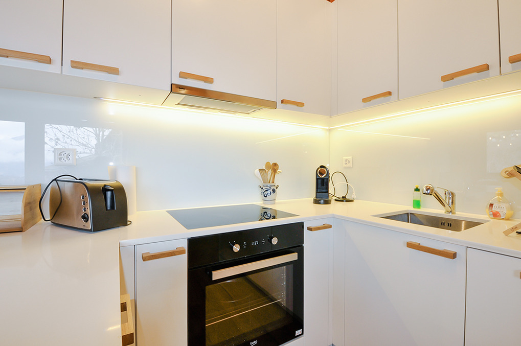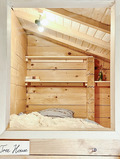 1. Etage: Schöner Küchen-/Essraum mit großem Esstisch, TV, kleiner Esstheke, moderner Einbauküche (Backofen, Gefrierschrank, Spülmaschine), Balkon. Vom Wohnraum steile Leiter zur Schlafkoje (Doppelmatratze, keine Stehhöhe). Doppelzimmer mit Doppelbett. 4-Bettzimmer mit Etagenbett, Hochbett (2 Pers.). Bad: Bw/Du, Wb, WC.