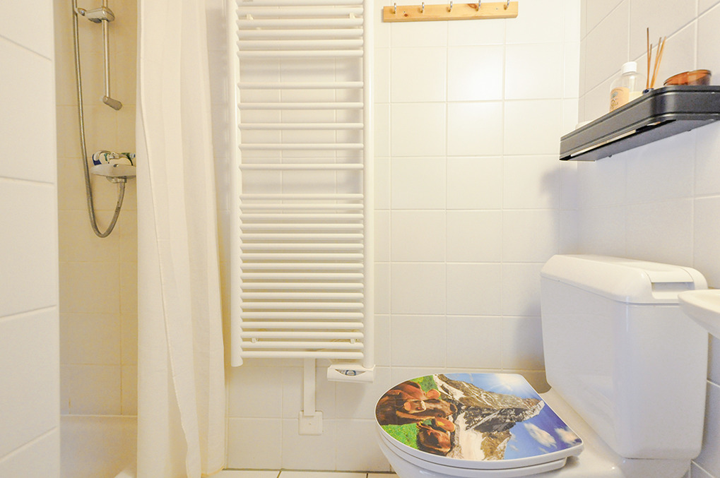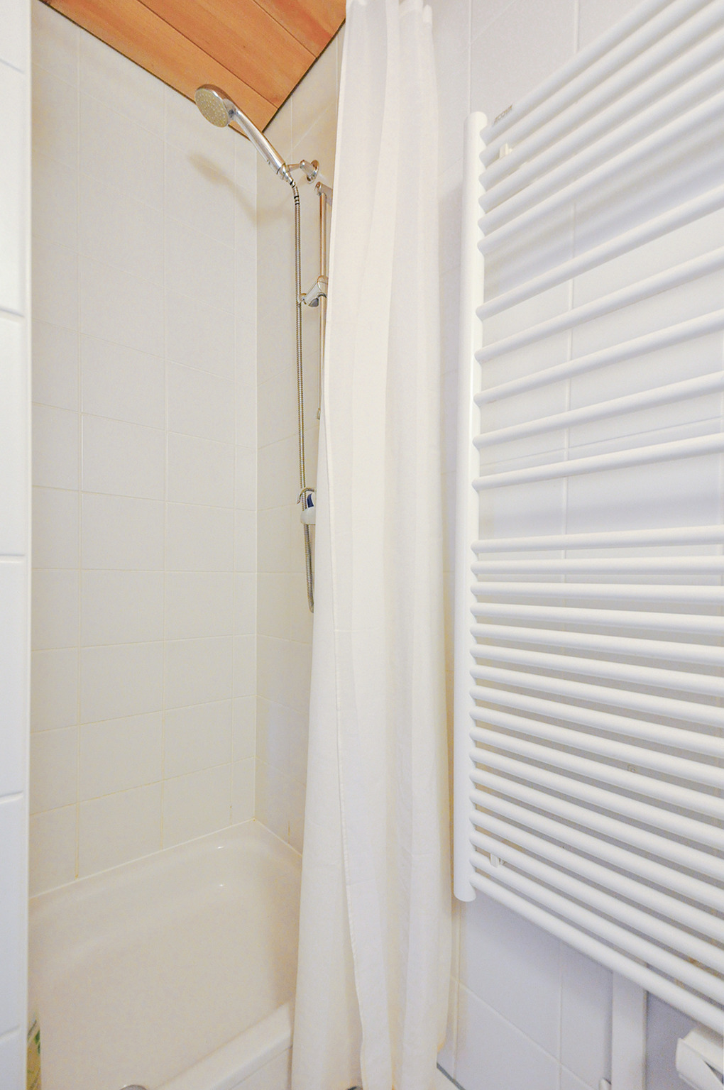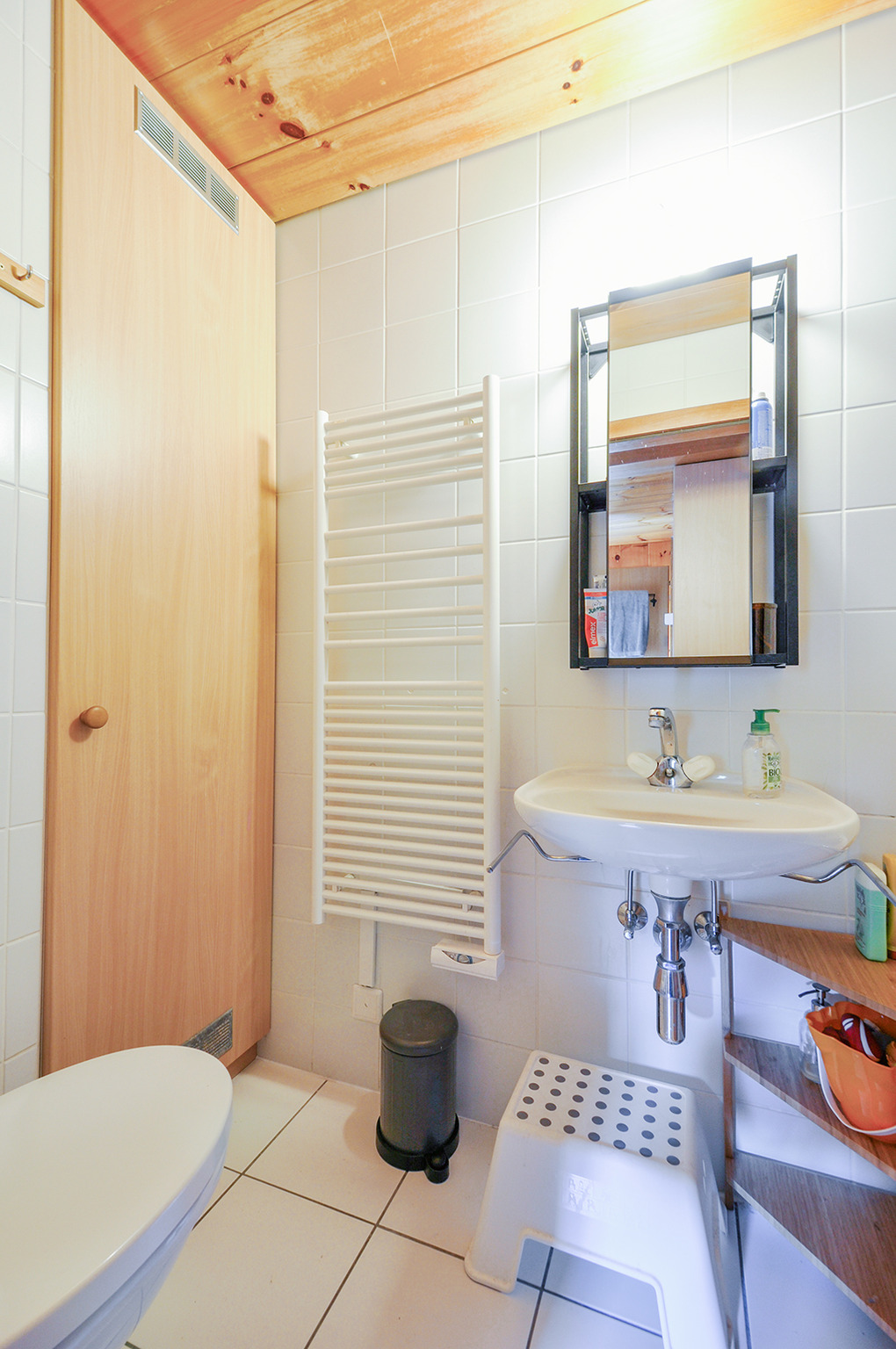 Parterre:. Flur mit Garderobe. 2-Bettzimmer mit Etagenbett. Bad: Bw/Du, Wb, WC. Weiteres kleines Bad: Du, Wb, WC.
