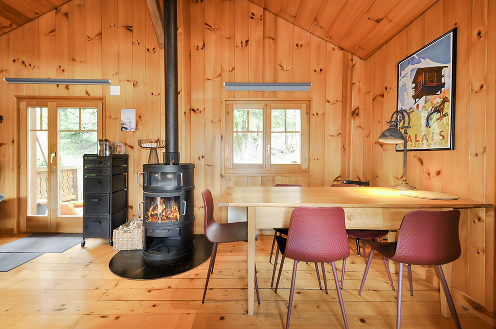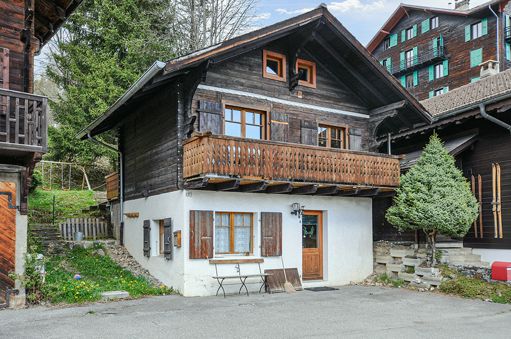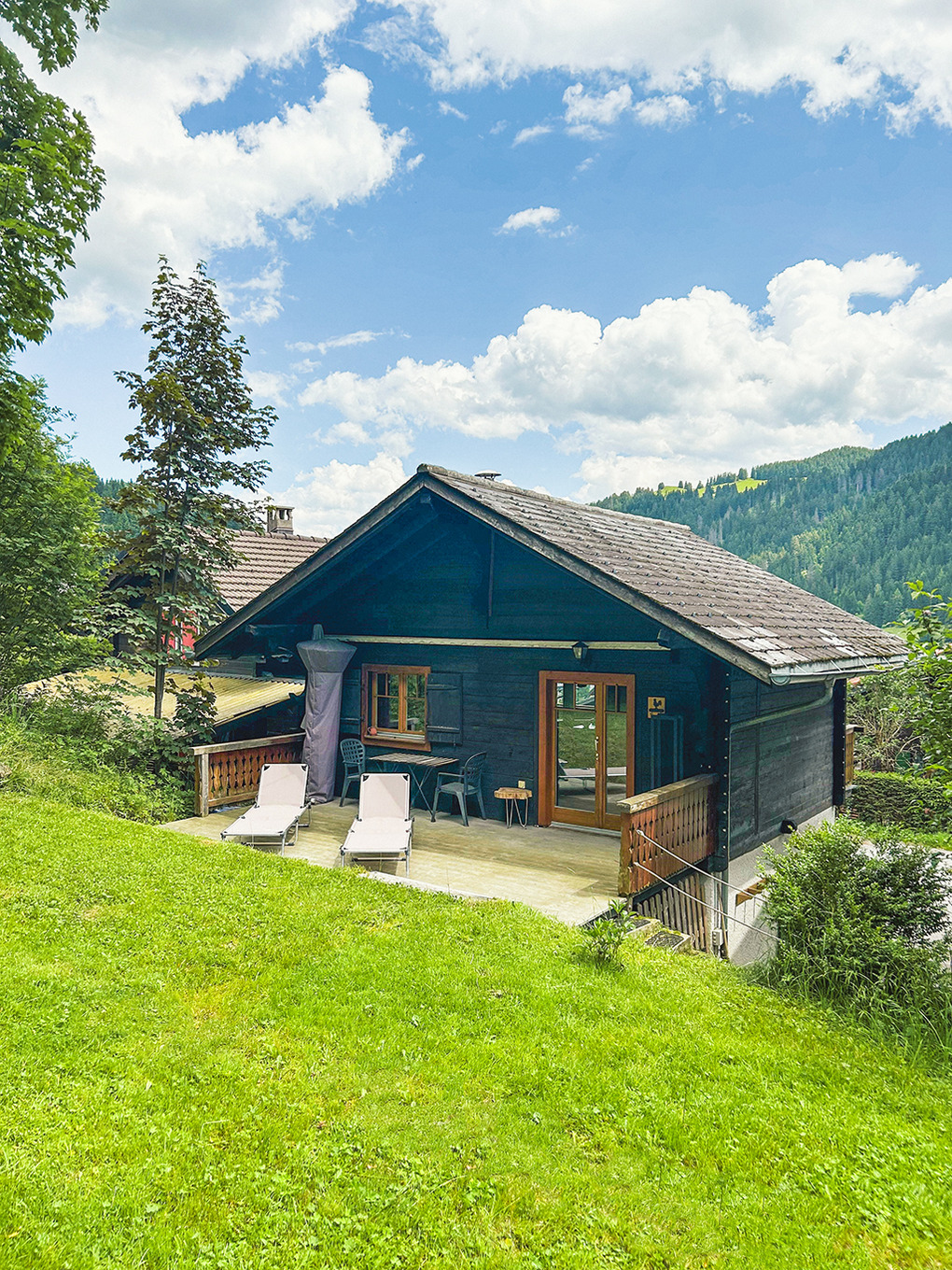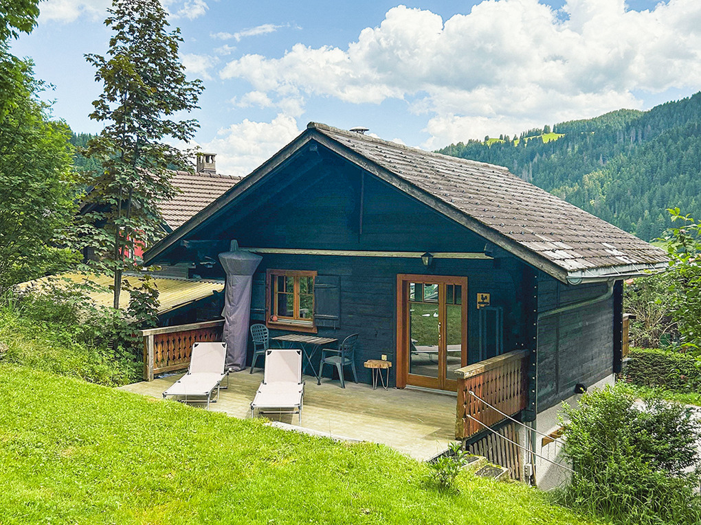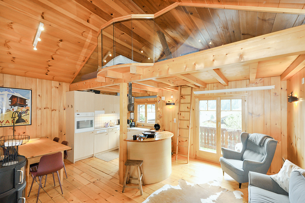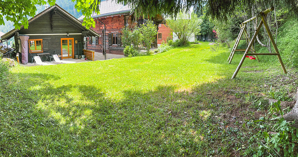Haus:. Uriges, kleines Chalet mit Kaminofen.. 2-Zimmer-Haus mit ca. 60 qm Wohnfläche über 2 Etagen. Gemütliche Chalet-Atmosphäre durch Holzvertäfelungen im ganzen Haus. Gepflegte Einrichtung. Zentrum des Hauses ist der hübsche, bis zum Dachgiebel ausgebaute Wohnraum, der sich über die ganze obere Etage erstreckt. Internetzugang. über W-Lan. Heizung über E-Radiatoren, Kaminofen. Terrasse mit Sitzmöbeln. Balkon mit schönem Blick übers Dorf und auf die umliegenden Berge. 2 Pkw-Stellplätze am Haus.