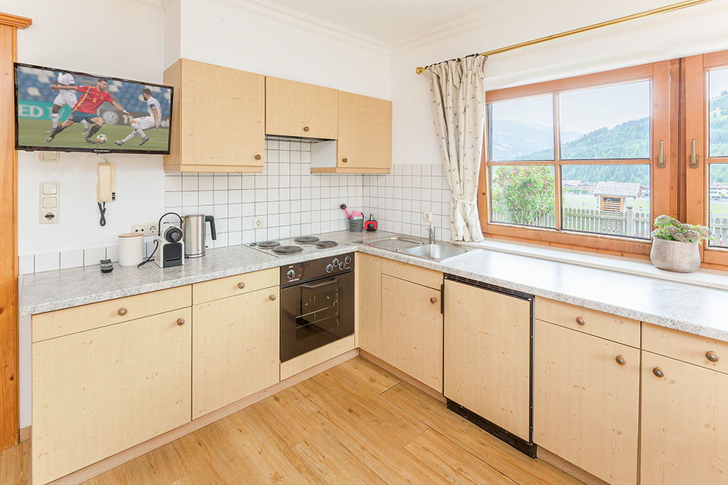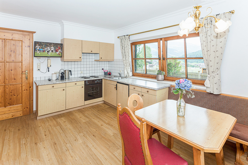 Ort: Kirchberg. Ruhige Lage am Ortsrand. Ortsmitte 900 m. Supermarkt 500 m. Sessellift, Rodelbahn am Gaisberg 1,2 km. Gondelbahn ins Skigebiet Kitzbühel 3 km. Skibus 50 m.