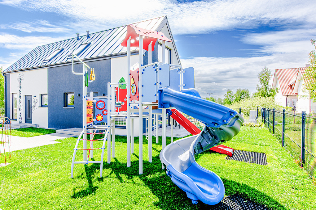 Haus: Gepflegte Ferienhaus-Anlage mit Rezeption. Schöne, moderne Ferienhäuser mit geschmackvoller Einrichtung, E-Kamin. Kostenloses Internet (WiFi). Fußbodenheizung. Terrasse mit Sitzmöbeln, Grill. Kinderspielplatz mit Klettergerüst, 2 Rutschen. 1 Pkw-Stellplatz/Haus.