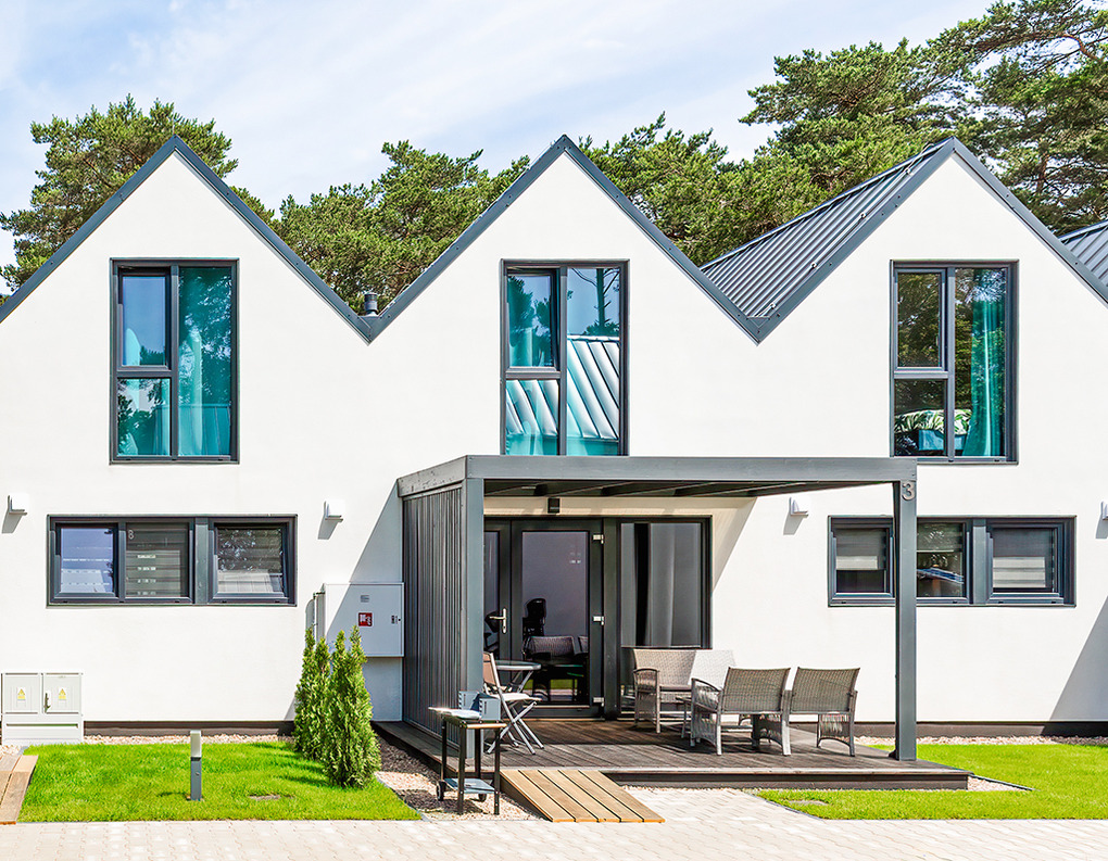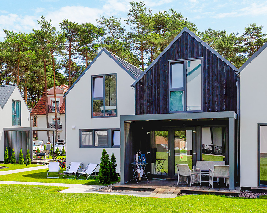 PL 30.7 Ferienhäuser 1-7 Pers.: Komfortables 3-Zimmerhaus mit ca. 60 qm Wohnfläche über 2 Etagen. Parterre: Wohn-/Essraum mit Sofa (Ausziehcouch 2 Pers.), Flachbild-Sat-TV mit deutschen Programmen, Esstisch, gut ausgestatteter Küchenzeile (2 Induktionsplatten, Mikrowelle, Spülmaschine). Bad: Du, Wb, WC, Fön. 1. Etage: 3-Bettzimmer mit Doppelbett, Einzelbett, Safe, Sat-TV.