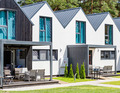 Haus: Gepflegte Ferienhausanlage mit komfortablen Ferienhäusern (Nichtraucherhäuser) auf einem umzäunten Grundstück. Freundliche, wohnliche Einrichtung. 2 Schlafzimmer, eines davon mit Safe und Sat-TV. Kostenloses Internet über W-Lan. Heizung über Klima-Anlage, E-Radiatoren. Terrasse mit Sitzmöbeln, Grill. Spielplatz mit Tischtennis, Kicker, Schaukel, Klettergerüst, Rutsche, Fitnessgeräte, Sauna und Whirlpool zur gemeinschaftlichen Nutzung. 10 Fahrräder vorhanden. 1 Pkw-Stellplatz/Haus auf dem abgeschlossenen Grundstück. Frühstück auf Bestellung vor Ort möglich.