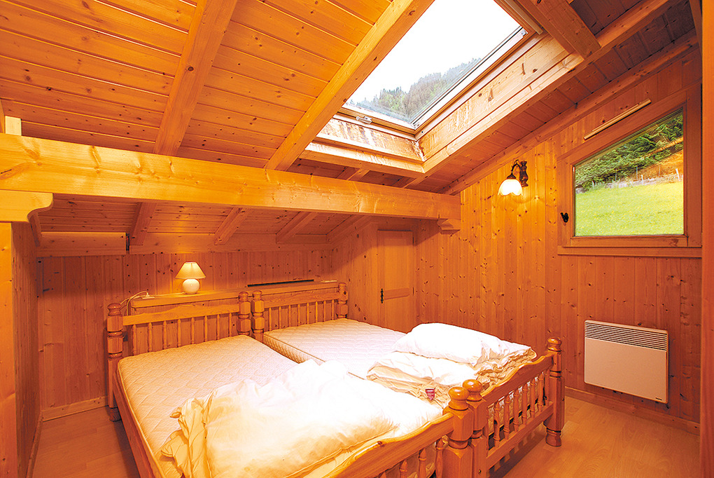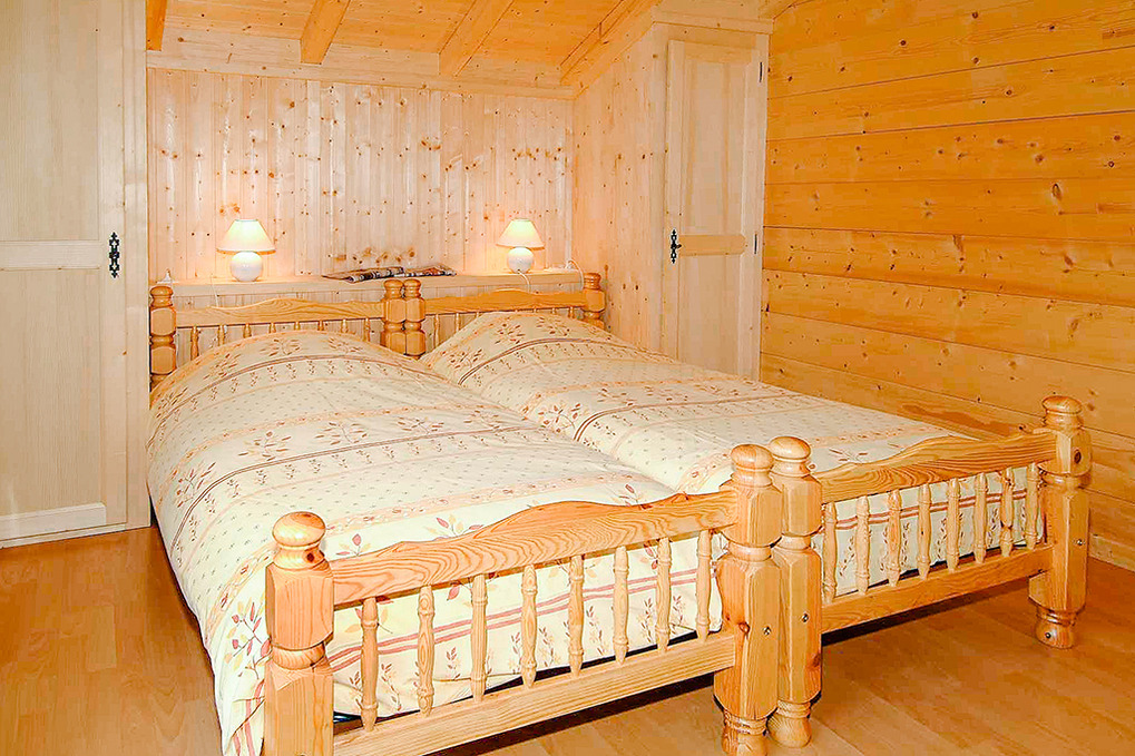 Haus: Sehr schönes Chalet mit Sauna. 7-Zimmerhaus mit 180 qm Wohnfläche über 3 Etagen. 6 Schlafräume, alle mit eigenem Bad (Du, Wb). Rustikal-gemütliches Flair durch Holzvertäfelung in vielen Räumen. E-Heizung. 400 l Warmwasser über 2 E-Boiler. Große überdachte Sonnenterrasse mit Gartenmöbeln, Grill.