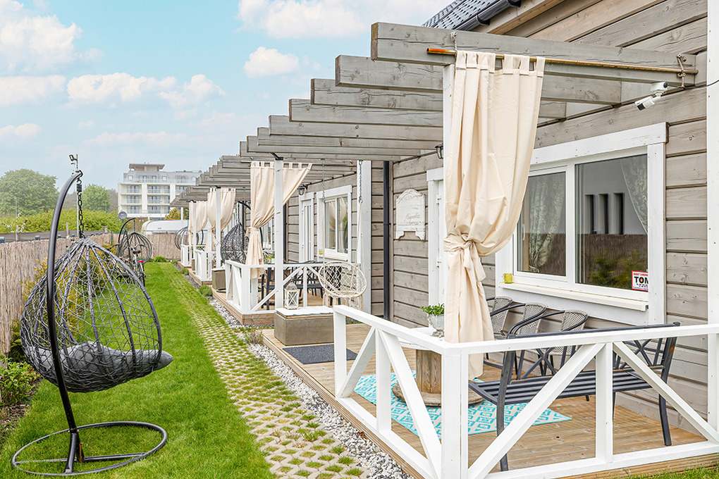 Ort: Rogowo, westlich von Kolberg (19 km). Sehr gute Lage in einer strandnahen Ferienhaussiedlung auf der schmalen Nehrung zwischen Ostseestrand (500 m) und Reskosee (550 m). Restaurant 300 m (geöffnet Juli- August), Einkaufmöglichkeiten 300 m (Mai-Sept.), Supermarkt 3 km. Motorboot-, Tretboot-, Kajak-, Ruderbootverleih 1,3 km (Juli-August) Hochseilgarten 3 km. Reitstall mit Reitunterricht, organisierten Ausritten 3 km. Surf-Kiteschule mit Verleih 7,5 km. Über 220 km großes Radfahrwegenetz, z.B. entlang der Küste nach Kolberg oder Rewal 300 m.