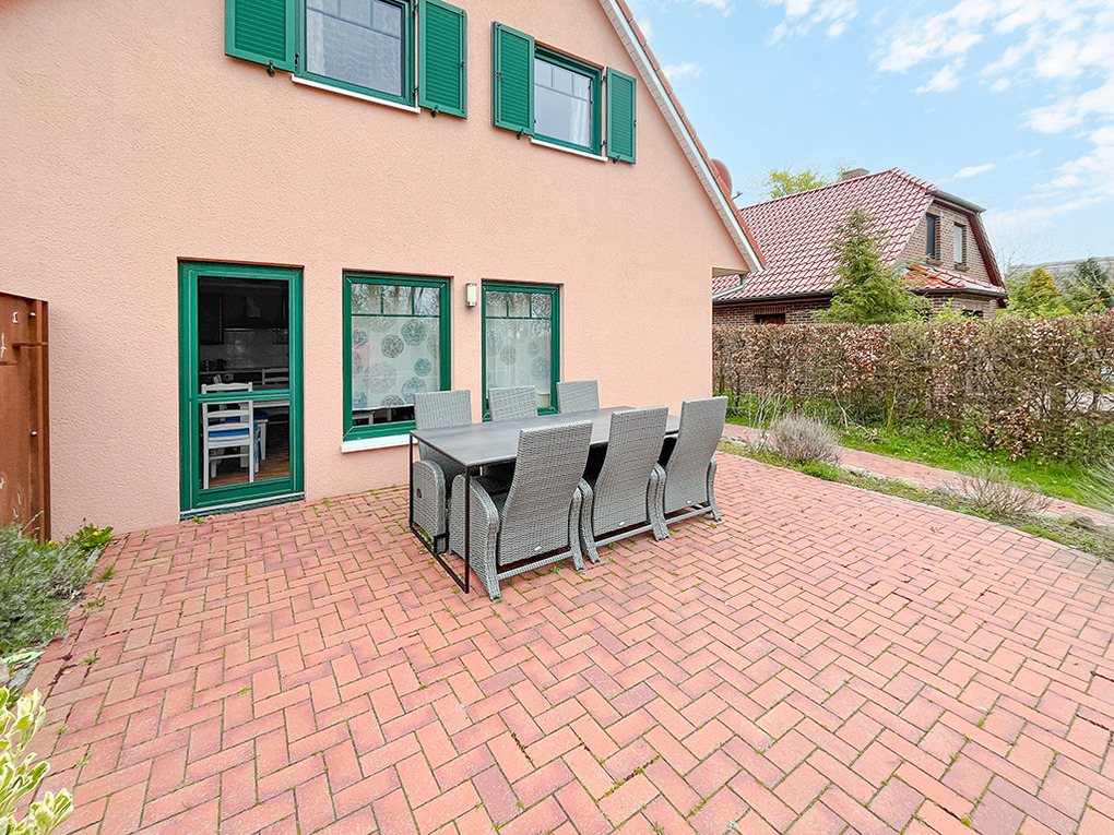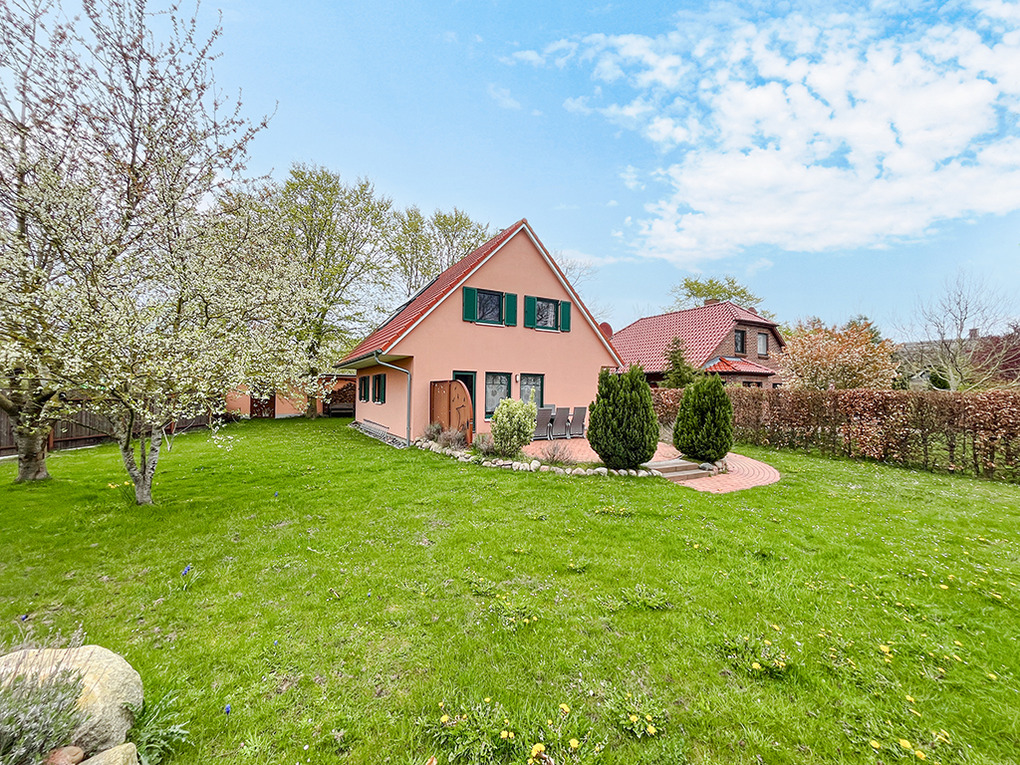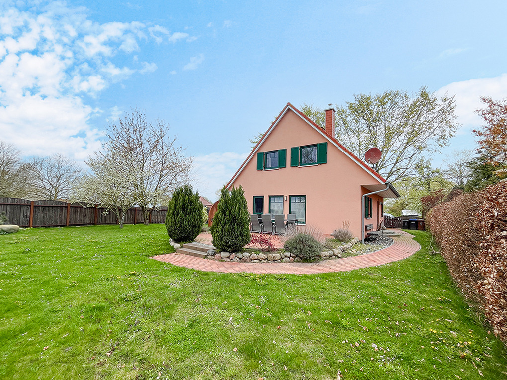 Haus: Schönes Ferienhaus mit Kaminofen auf einem 800 qm großen Grundstück (Grundstück ist komplett eingezäunt). Großzügiges Ferienhaus mit komfortabler Ausstattung und hochwertiger Möblierung. Zentralheizung. Terrasse mit Sitzmöbeln. Garten mit Rasenfläche (400 qm). 2 Pkw-Stellplätze am Haus.