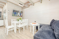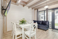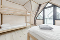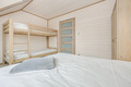 PL 51.10 Ferienhaus 2-9 Pers.: Stilvolles 3-Zimmer-Reihenhaus mit ca. 59 qm Wohnfläche über 2 Etagen. Schöner Wohn-/Essraum mit weißer Holzbalkendecke, bodentiefem Fenster, Klimaanlage mit Heizfunktion, Sofa (Ausziehcouch 2 Pers.), SMART Sat-TV (dt. Programme), Esstisch, Küchenzeile (2 Platten Ceranfeld, Mikrowelle, Spülmaschine, Waschmaschine). Bad: Du, Wb, WC. Vom Wohnraum Holztreppe ins Dachgeschoss: 4-Bettzimmer mit franz. Doppelbett, Etagenbett. 4-Bettzimmer mit franz. Doppelbett, Etagenbett. Bad: Wb, WC. Überdachte Terrasse mit Sitzmöbeln und Grill.