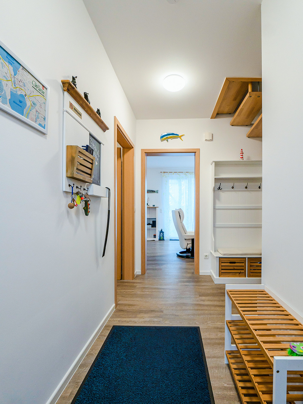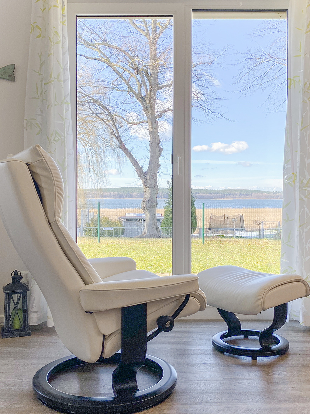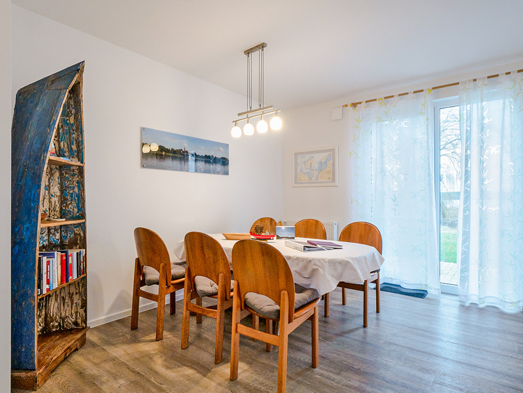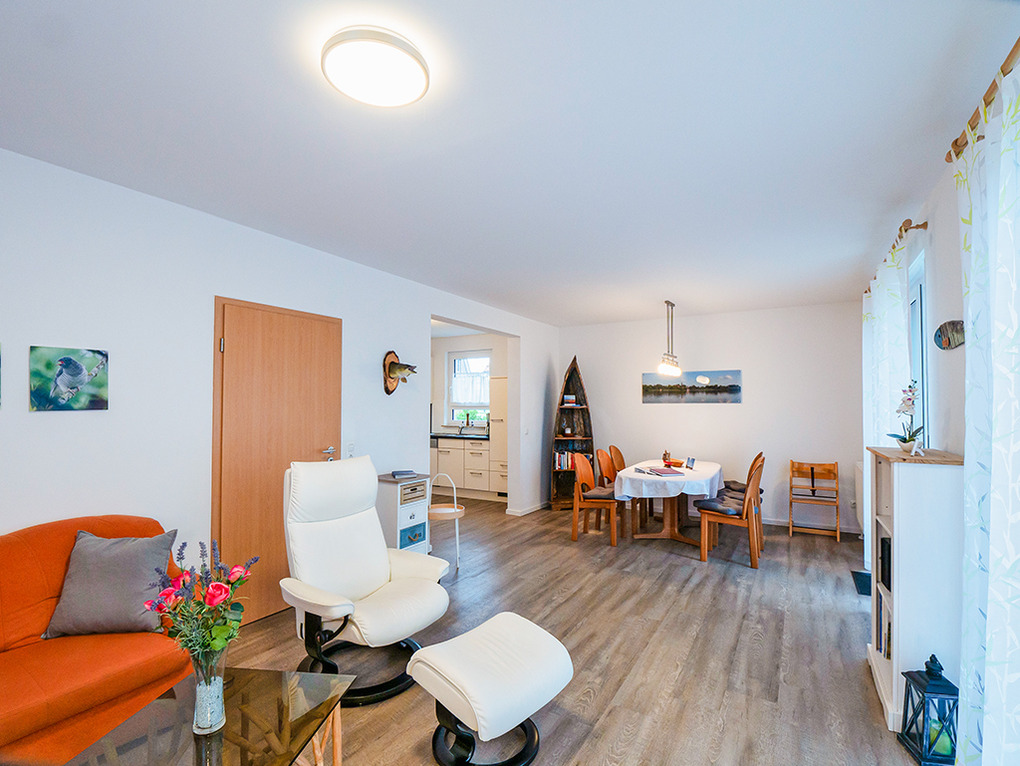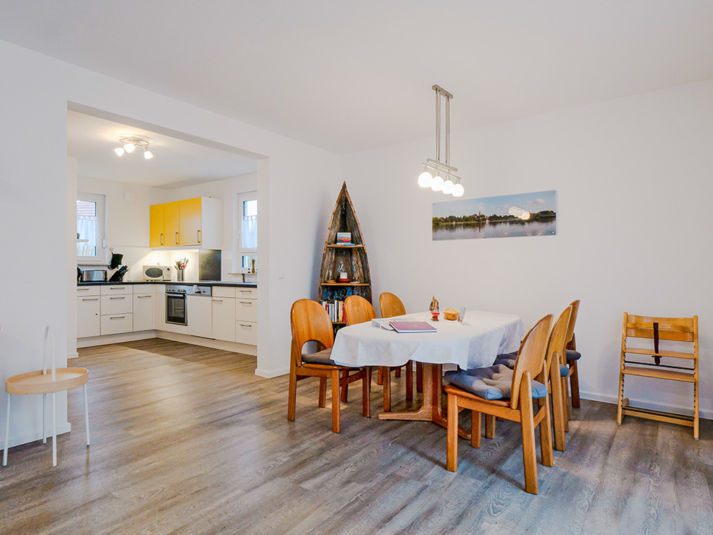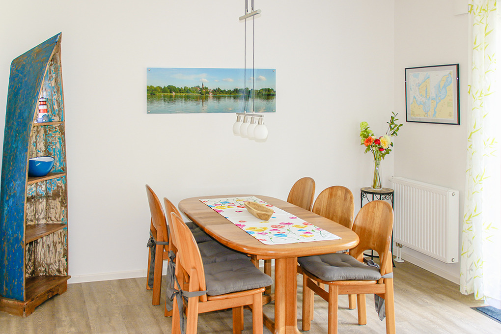 Haus: Komfortables Ferienhaus mit Seeblick. Geschmackvolle, moderne Einrichtung. Internetzugang. Waschmaschine. Zentralheizung. Nichtraucherhaus. Große Terrasse mit schönem Wasserblick (Sitzmöbel, Grill). Abgeschlossener Garten mit Strandkorb, Rasenfläche, Liegestühlen. Zwei Pkw-Stellplätze. Ein Kanu, zwei SUP-Boards vorhanden (kostenfrei nutzbar auf eigene Gefahr). Gartenhaus für Räder (2 ältere Räder vorhanden, kostenfrei nutzbar).