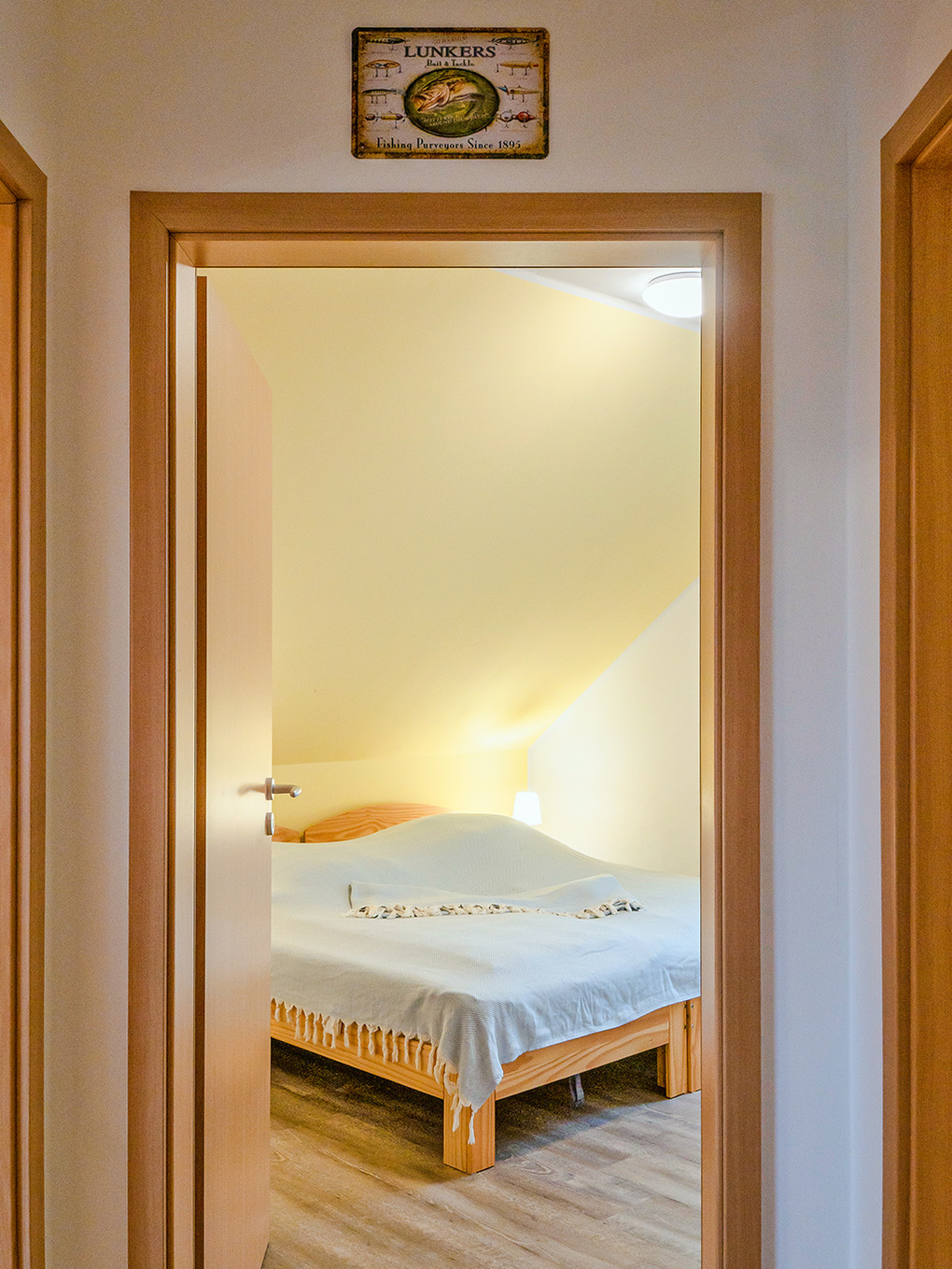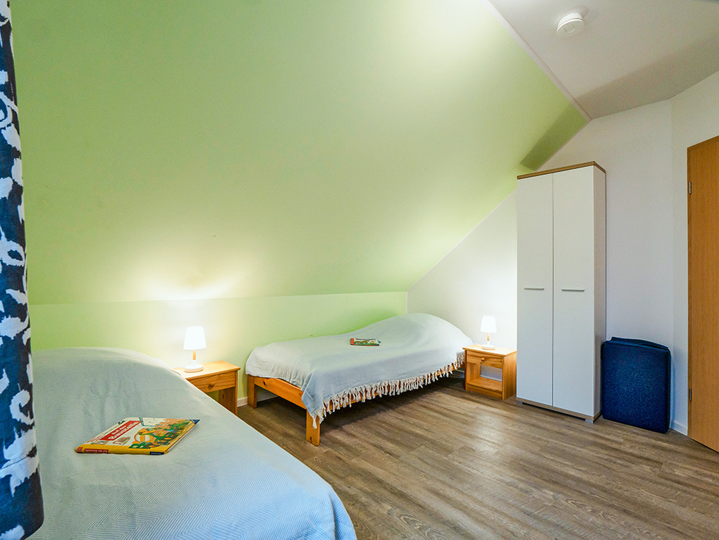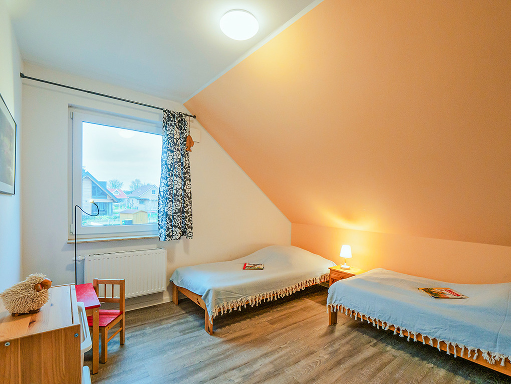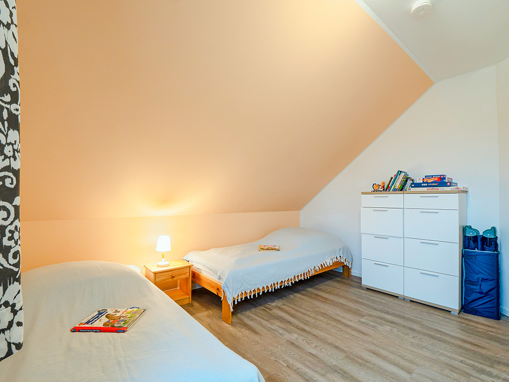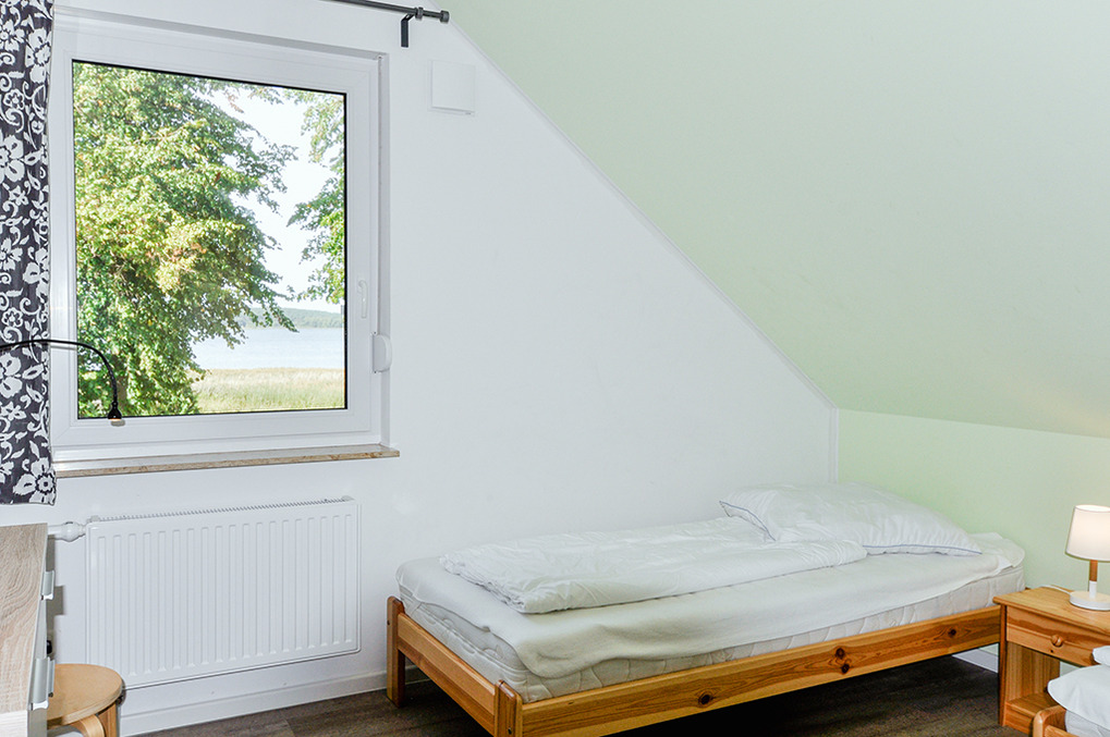 D 45.51 Ferienhaus 2-6 Pers.: Modernes 4-Zimmerhaus mit 100 qm Wohnfläche über 2 Etagen. Parterre: Wohn-/Essraum mit Seeblick, Sitzgruppe, Ruhesessel, Sat-TV, Blu-Ray, Radio/CD, Esstisch, gut ausgestatteter Einbauküche (Backofen, Mikrowelle, Spülmaschine), Terrasse. Separates WC. 1. Etage (leichte Schrägen): Doppelzimmer mit Seeblick. 2-Bettzimmer mit Seeblick. Weiteres 2-Bettzimmer. Bad: Du, Bw, Wb, WC.