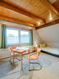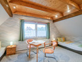 D 46.191 Ferienhaus 2-4 Pers.: 3-Zimmerhaus mit 86 qm Wohnfläche über zwei Etagen. Parterre: Großzügiger Wohn-/Essraum mit Couchgarnitur, Flachbild-TV, Radio/CD, weiterer Sitzecke, Esstheke mit Blick auf den See, Küchenzeile (Backofen, Mikrowelle). Bad: Du, Wb, WC. 1. Etage (leichte Schrägen): Großes Doppelzimmer mit Panoramafenstern zum See, Balkon (Sitzmöbel). 2-Bettzimmer mit 2 Einzelbetten, kleiner Sitzecke, TV. Separates WC.