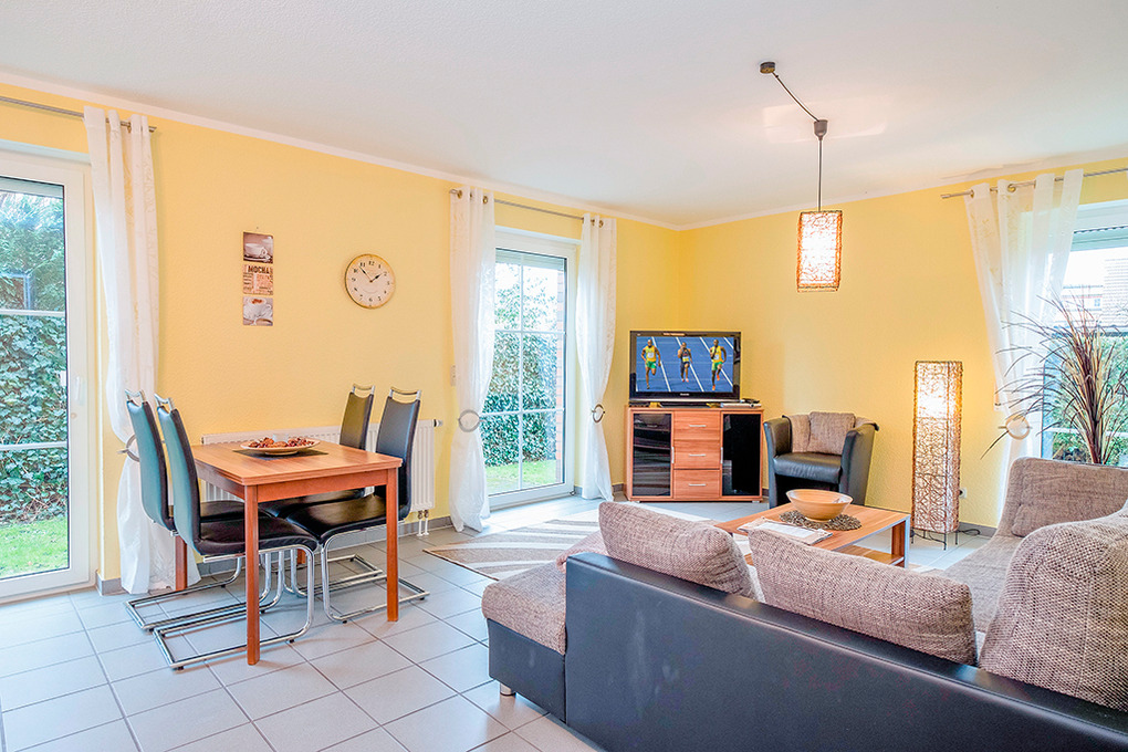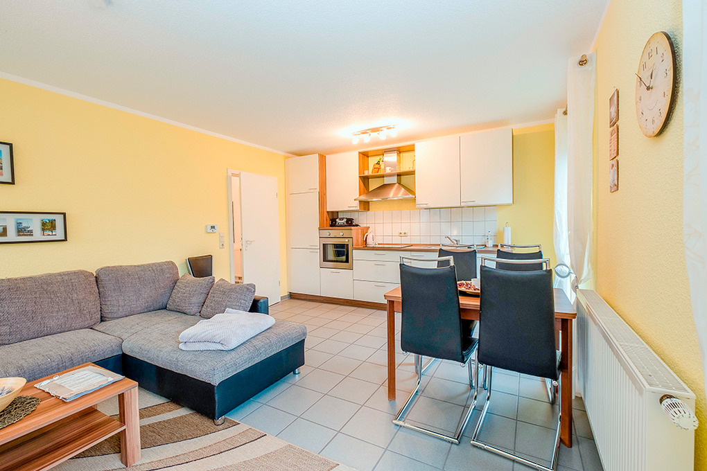 D 67.0902 Wohnung 1-4 Pers.: 3-Zimmer-Nichtraucherwohnung mit 60 qm Wohnfläche. Wohn-/Essraum mit gemütlicher Sitzgarnitur, Sat-TV, DVD, Esstisch, Küchenzeile (Backofen, Spülmaschine, Doppelzimmer. 2-Bettzimmer. Bad/WC. Terrasse mit Sitzmöbeln.