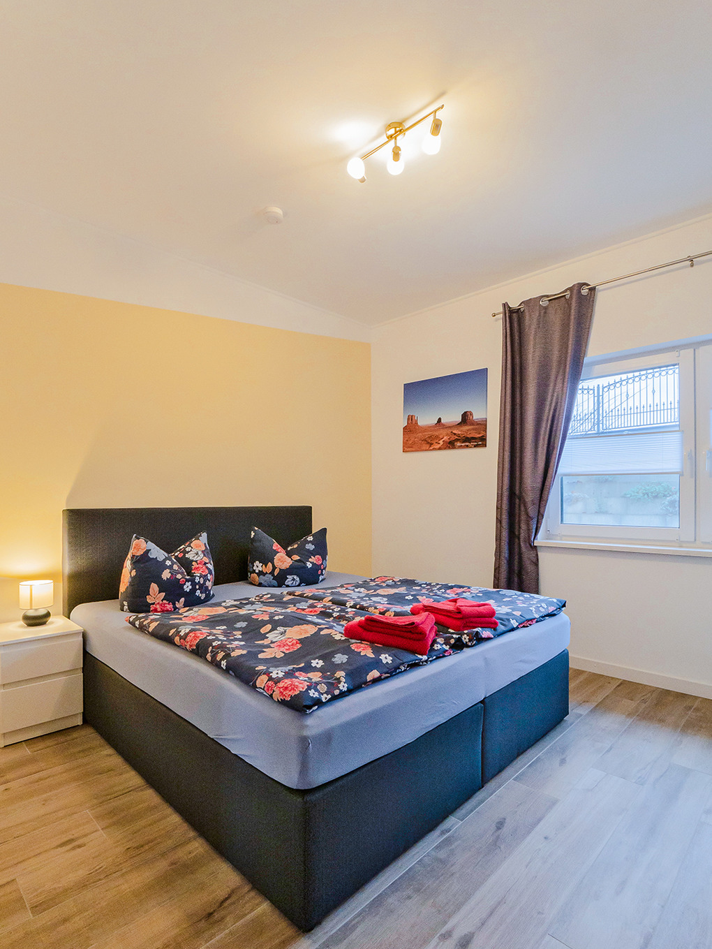 D 54.117 Reihenbungalows 2-4 Pers.: 3-Zimmerhaus, 65 qm Wohnfläche. Wohn-/Essraum mit Sitzgarnitur, Couchtisch, Flachbild-TV, moderner Küchenzeile (Backofen, Mikrowelle, Spülmaschine). Doppelzimmer. 2-Bettzimmer. Bad: Du, Wb, WC, Fön. Überdachte Terrasse mit Sitzmöbeln.