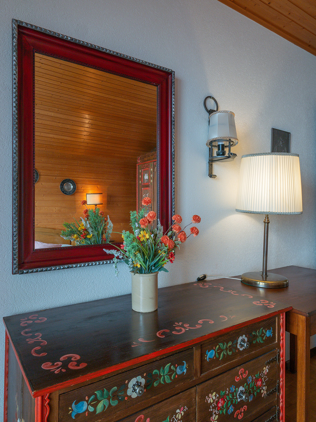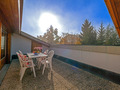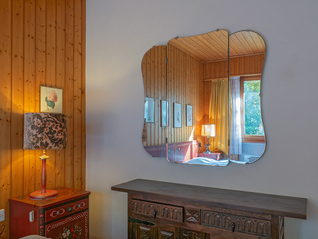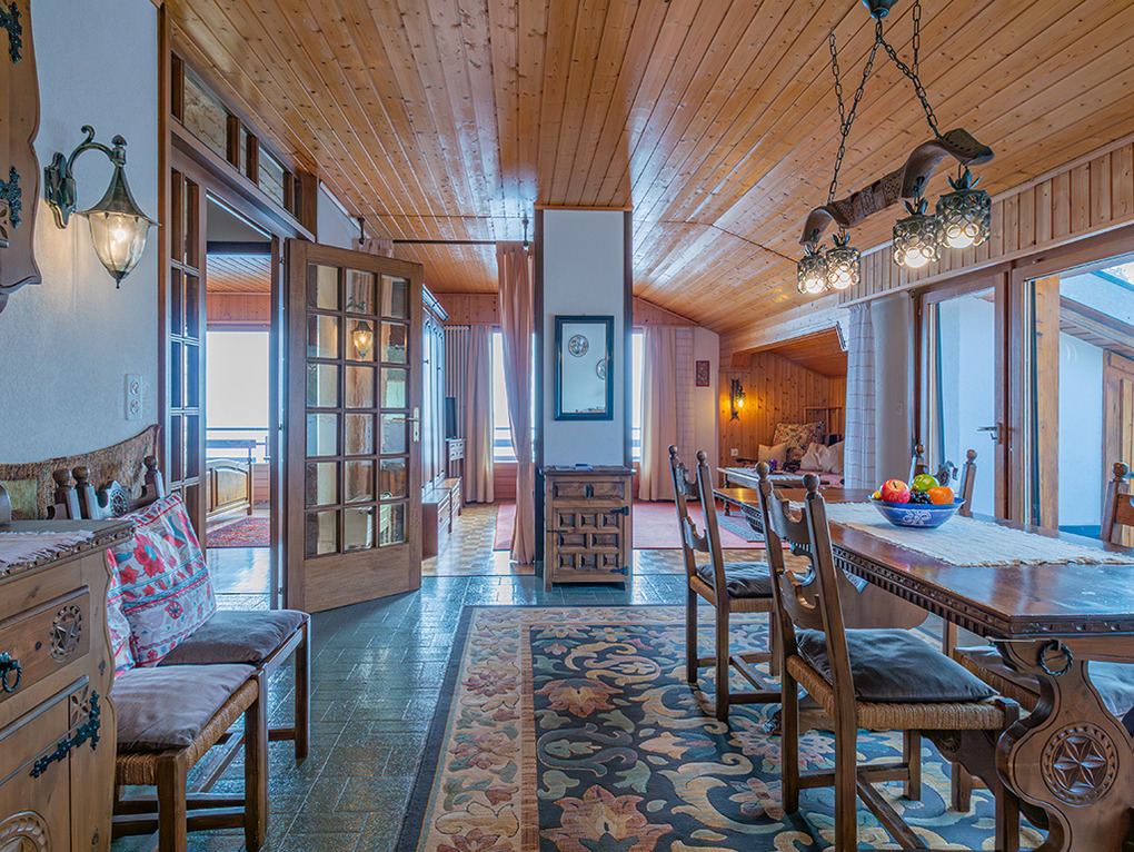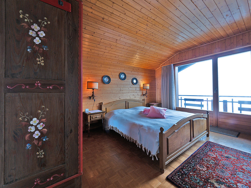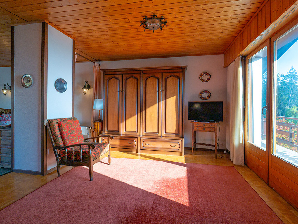 Haus: Großes regionaltypisches Chalet mit Schwimmbad und Sauna. Schönes Wohnhaus mit 2 Ferienwohnungen und der fest bewohnten Wohnung des Vermieters. Bei gemeinsamer Anmietung beider Fewos ergeben sich 6 Zimmer mit 180 qm Wohnfläche, gemeinsames Essen in der oberen Wohnung möglich. Gemütliche Chalet-Atmosphäre durch Holzvertäfelungen in vielen Räumen. Im Haus: großes Schwimmbad (10 x 4,50 Meter, 28°C, kostenfrei nutzbar) mit Ruheliegen vor großen Panoramafenstern, Sauna (Gebühr), Duschen, WC. Internetzugang über W-Lan. Waschmaschine. Zentralheizung. Nichtraucherhaus. Balkon oder Terrasse (Sitzmöbel). Tiefgarage mit 4 Pkw-Stellplätzen (max. 1,95 m Höhe), weitere Außenplätze je nach Verfügbarkeit. Hinweise: Betriebszeiten Schwimmbad nur von Weihnachten bis Ostern. Gemeinschaftsnutzung mit zwei weiteren Fewos im Nachbarchalet. Aufgrund der Bettengrößen ist eine Belegung mit max. 12 Erwachsenen möglich.