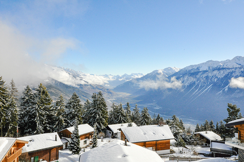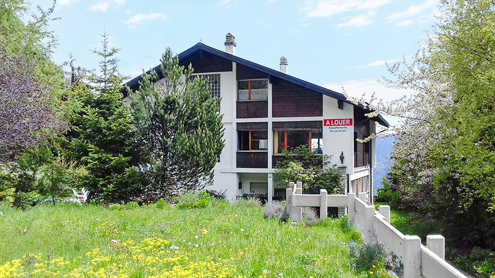 Ort: Crans-Montana. Optimaler Standort: Talstation Les Violettes-Gondelbahn nur 150 m! Skiabfahrt bis in die Nähe des Hauses. Ruhige Lage mit herrlichem Blick auf die imposanten Viertausender des Wallis. Bahnhof Standseilbahn Crans-Montana 1 km. Ortsmitte Montana ca. 2 km. Skibus nur 100 m.