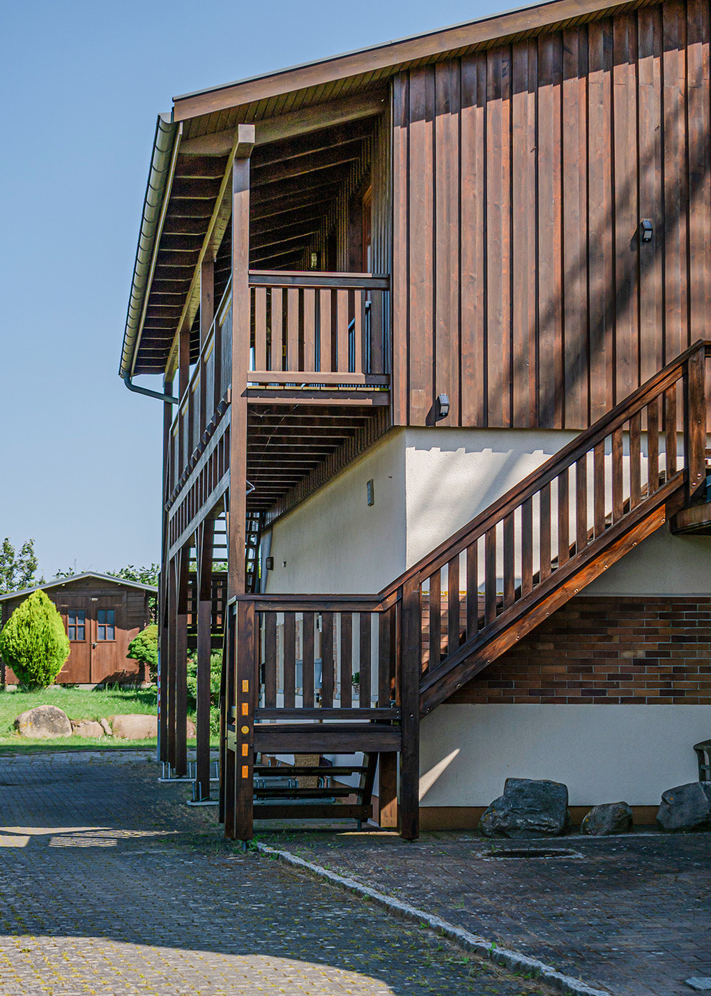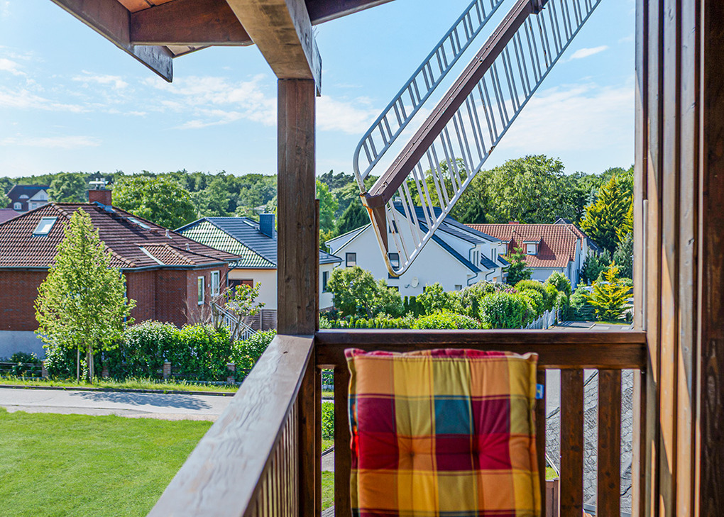 Haus: Besonderes Ferienhaus, direkt an der Holländerwindmühle, mit gepflegten Ferienwohnungen. Gemütliche Einrichtung. Zentralheizung. Schöner Balkon mit Sitzmöbeln. Pkw-Stellplatz am Haus.