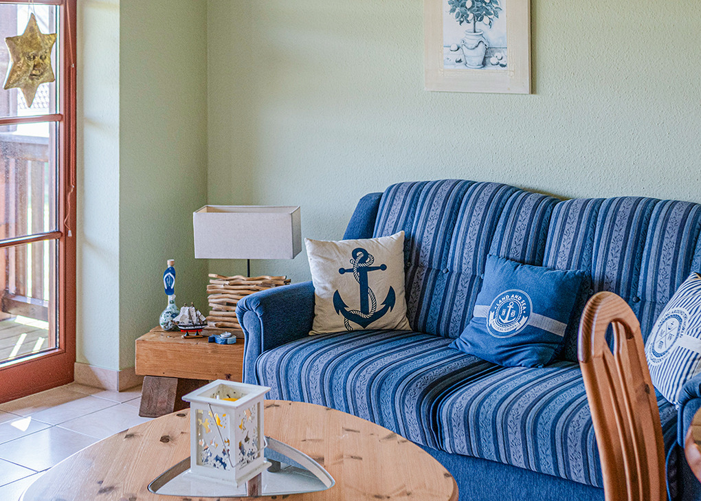 D 130.23 Wohnung 2 Pers.: 2-Zimmerwohnung mit 55 qm Wohnfläche, 1. Etage. Schöner Wohn-/Essraum mit Couchgarnitur, Sat-TV, Esstisch, Küchenzeile (4 Pl. E-Herd, Backofen, Kaffeemaschine). Doppelzimmer. Bad: Du, Wb, WC.