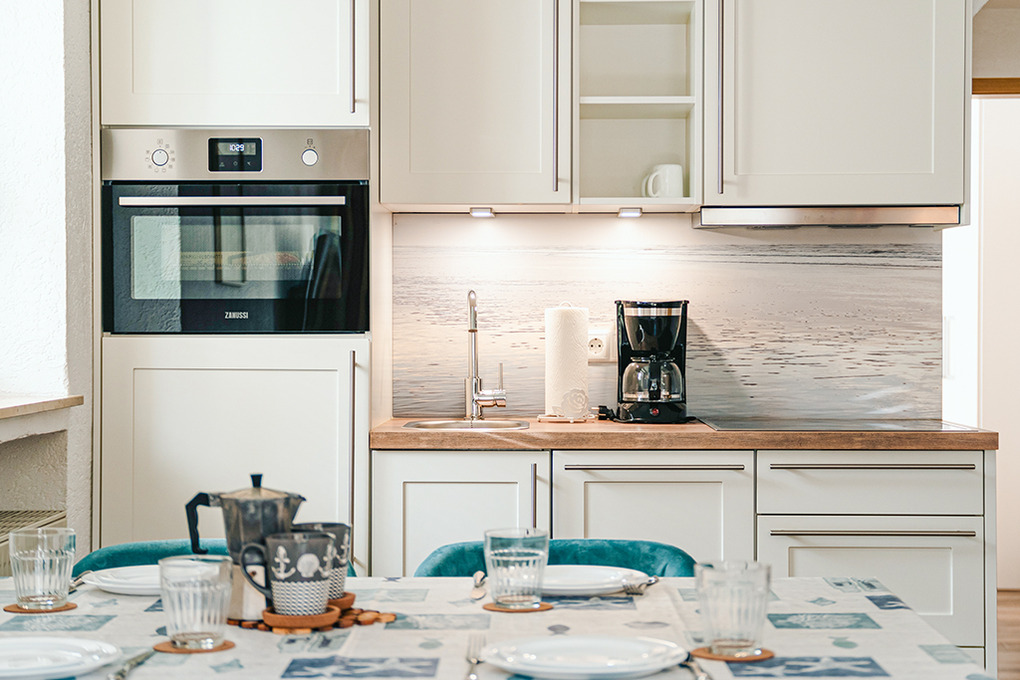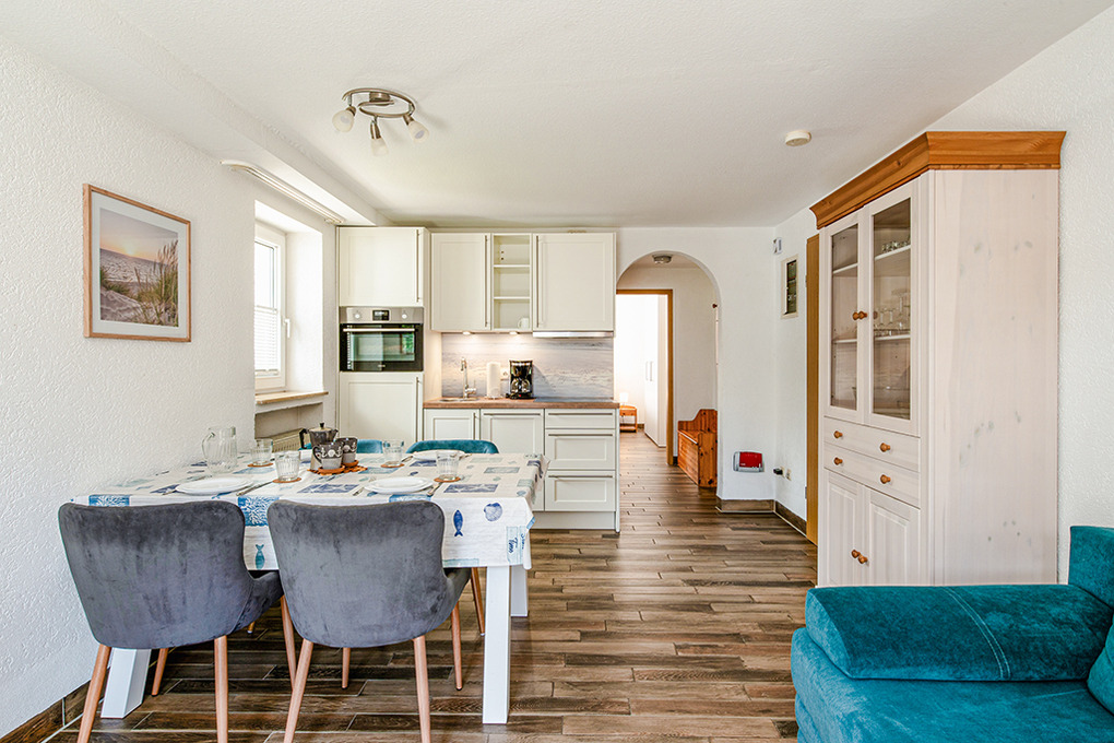 D 92.2 Wohnung 2-4 Pers.: Schöne 2-Zimmerwohnung mit 40 qm Wohnfläche, Parterre. Wohnraum mit Sofa (Ausziehcouch 2 Pers.), E-Kamin, Sat-TV, Esstisch, moderner Küchenzeile (Backofen, Spülmaschine). Doppelzimmer. Bad/ WC. Terrasse mit Sitzmöbeln.
