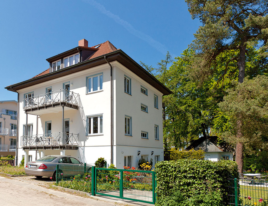 Ort: Ostseebad Baabe. Erstklassige Lage in unmittelbarer Strandnähe (200 m). Sehr ruhige Lage in einer Wohnsiedlung, dennoch zentral zur Ortsmitte (300 m).