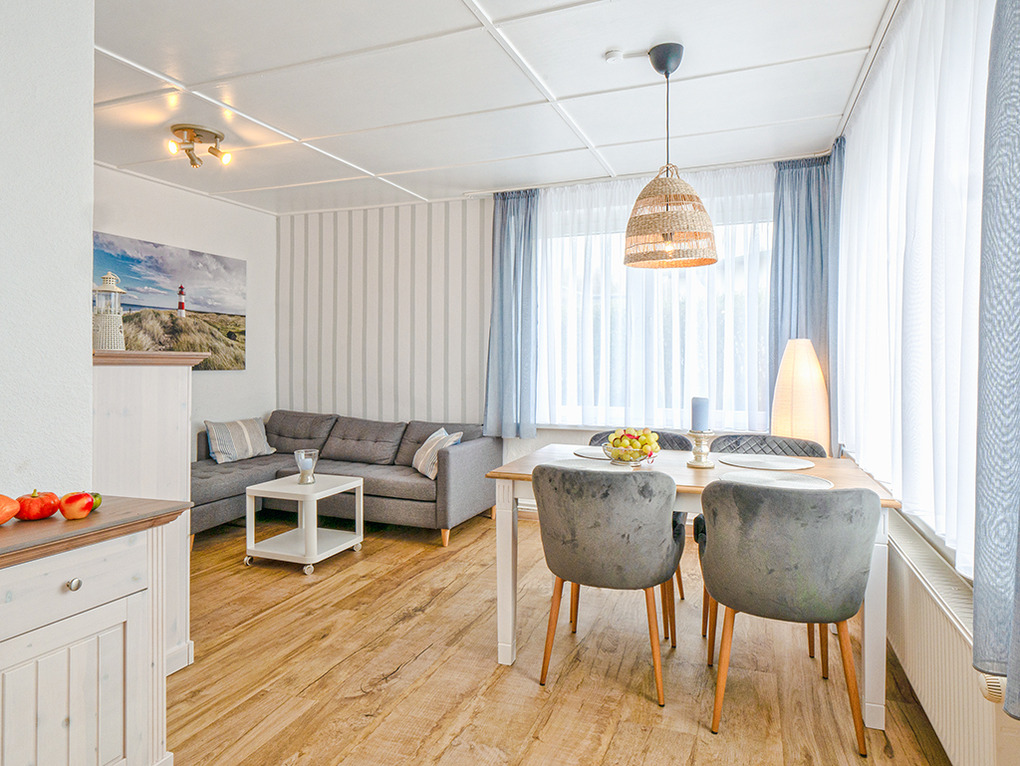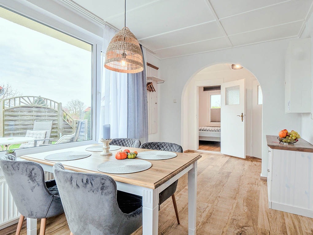 Haus: Familienfreundlicher Bungalow mit Strandhausflair, in 2022 neu renoviert. Geschmackvolle Einrichtung, gemütliches Ambiente. Zentralheizung. Kostenloser Internetzugang über W-Lan. Terrasse mit Sitzmöbeln, Grill, anschließender Rasenfläche. 2 Pkw-Stellplätze am Haus.