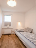 D 138.89W Ferienhaus 2-3 Pers.: 3-Zimmer-Bungalow mit 42 qm Wohnfläche. Heller Wohnraum mit Ecksofa, Sat-TV, Radio/CD, Esstisch. Separate Küche mit 4 E-Platten, Mikrowelle, Kühlschrank, Spülmaschine. Doppelzimmer. Kleines 1-Bettzimmer. Bad: Du, Wb, WC.