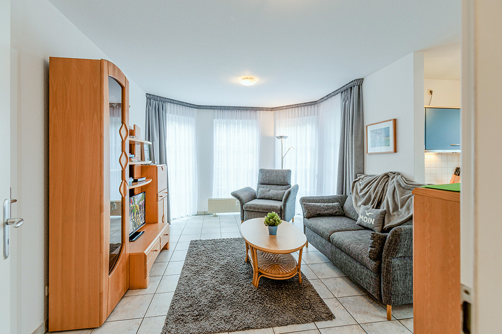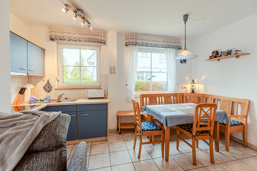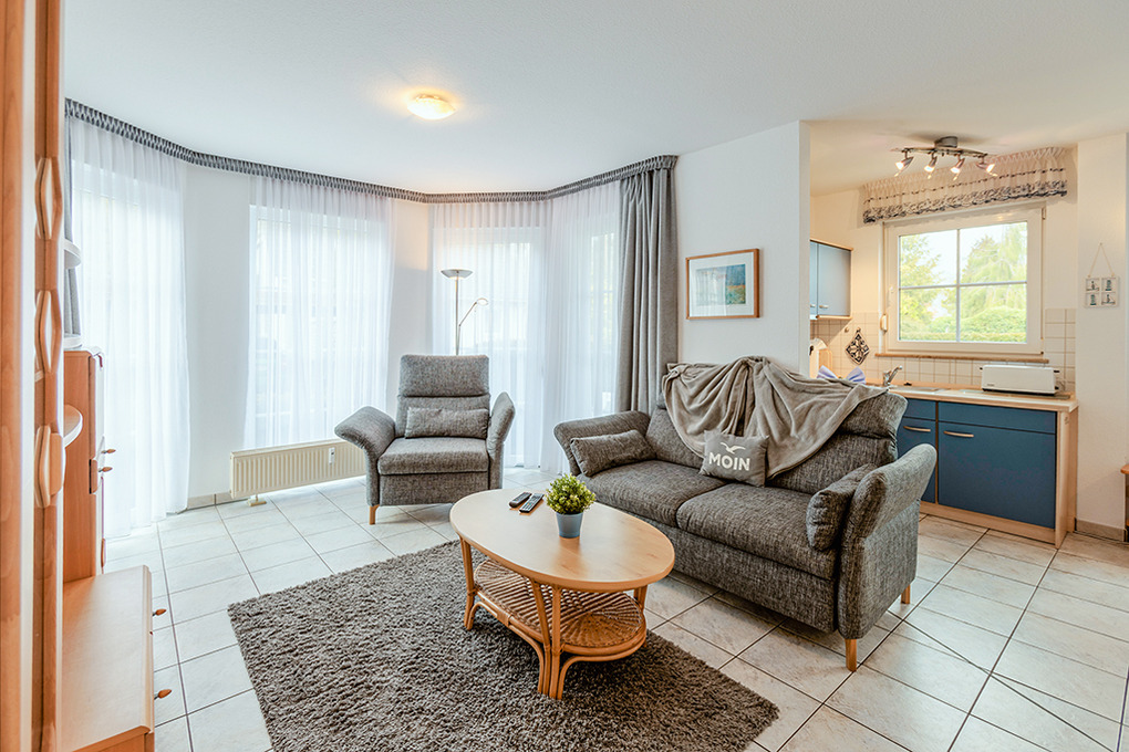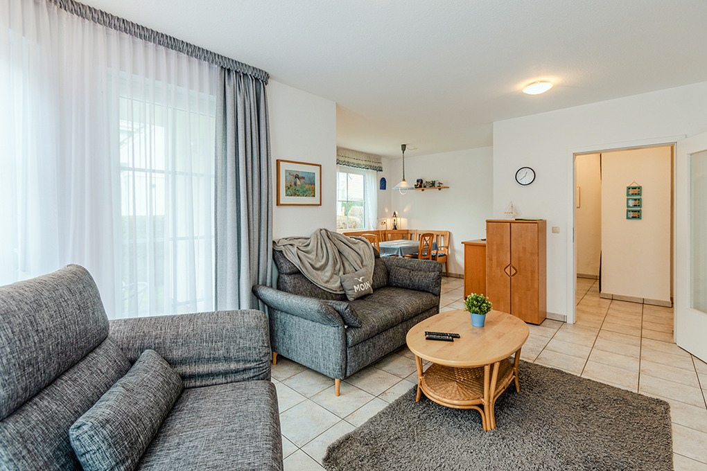Haus: Modernes Apartmenthaus mit mehreren Ferienwohnungen in Strandnähe. Komfortable, geschmackvolle Einrichtung. Nichtraucherwohnung. Kostenloser Internetzugang über W-Lan. Zentralheizung. Fahrradabstellraum für bis zu 4 Fahrräder. 1 Pkw-Stellplatz/ Ferienwohnung.