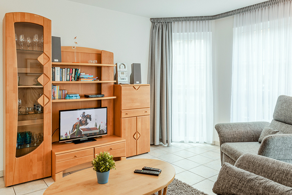 D 67.8203 Wohnung 1-4 Pers.: 3-Zimmerwohnung mit 60 qm Wohnfläche, Parterre. Heller, freundlicher Wohn-/Essraum mit gemütlicher Couchgarnitur, Sat-TV, CD- und Bluray-Player, Essecke mit Esstisch, Eckbank, moderner Küchenzeile (Backofen, Spülmaschine). Doppelzimmer. Weiteres Doppelzimmer mit Ausziehcouch (140 x 200 cm). Modernes Bad (Dusche, Waschbecken, WC). Terrasse mit Sitzmöbeln, anschließend kleiner Garten.