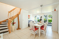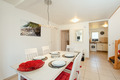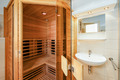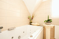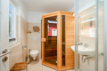D 120.46 Ferienhaus 2-4 Pers.: Ansprechende 3-Zimmerhaushälfte mit 80 qm Wohnfläche über 2 Etagen. Parterre: Wohn-/Essraum mit Kaminofen, Couchgarnitur, Sat-TV, DVD, Radio-CD, Esstisch, moderner Küchenzeile (Backofen, Spülmaschine, Mikrowelle). Bad: Infrarotsauna, Dusche, Waschbecken, WC. 1 Etage: Doppelzimmer mit Sat-TV. 2-Bettzimmer mit Sat-TV. Bad: Badewanne, Wb, WC.