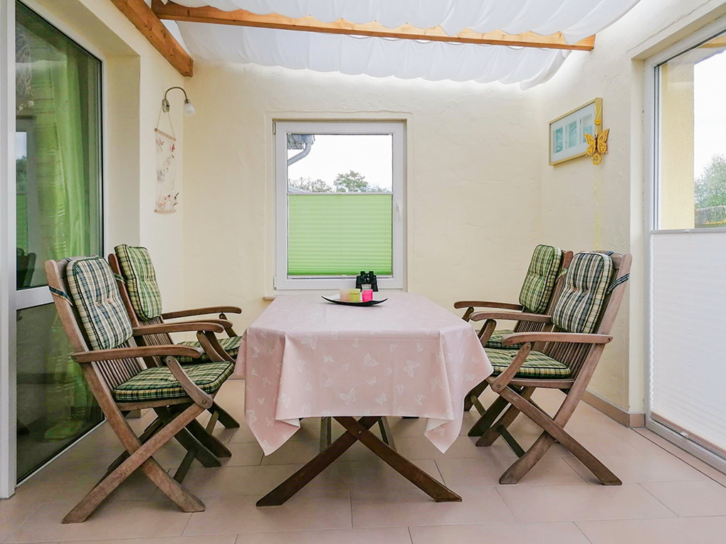 Haus: Modern eingerichtets Ferienhaus auf einem schönen und weitläufigen Grundstück mit Garten. Geschmackvolle Einrichtung. Zentralheizung. Großer, abgeschlossener Garten mit Liegewiese, Grillmöglichkeit. Wintergarten mit Blick auf die unverbaute Natur. Terrasse mit Sitz- und Liegemöbeln. Nichtraucherhaus.