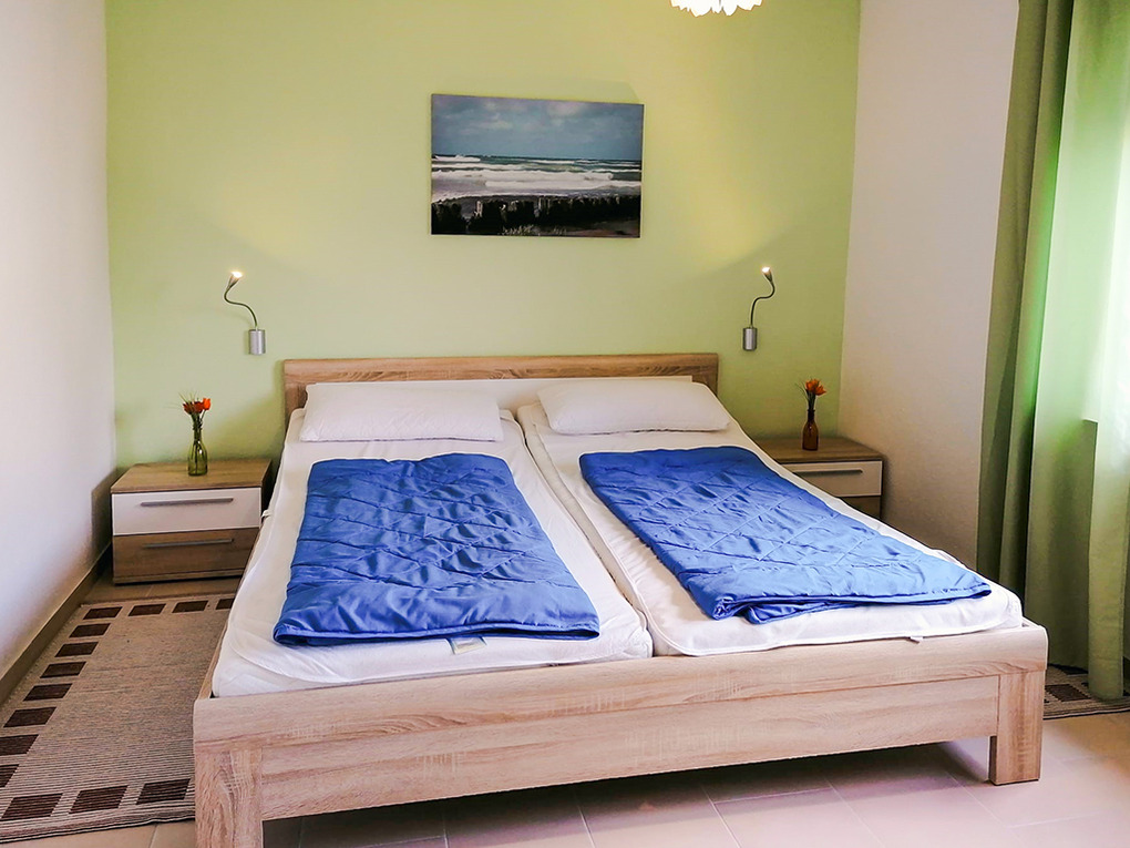 D 133.40 Ferienhaus 1-4 Pers.: 3-Zimmerhaus, ca. 70 qm Wohnfläche. Wohn-/Essraum mit Sitzecke, Flachbild-Sat-TV, Radio/CD, Esstisch. Einbauküche (Backofen, Mikrowelle, Spülmaschine). Zwei Doppelzimmer. Bad/WC.