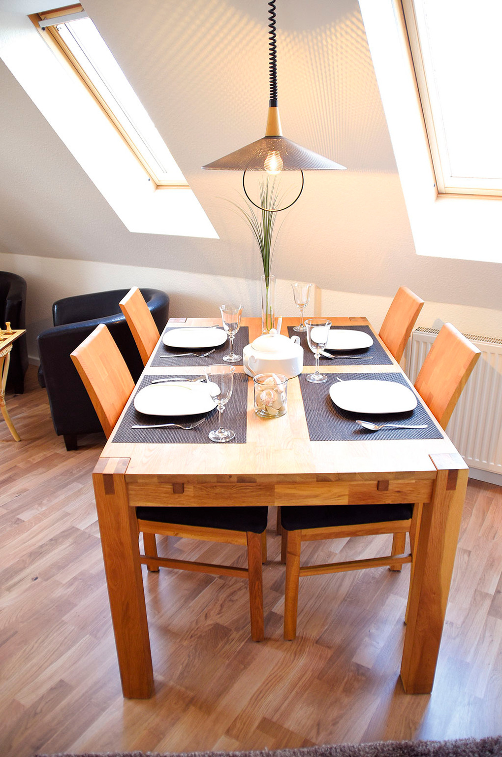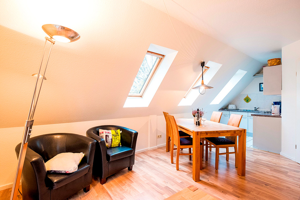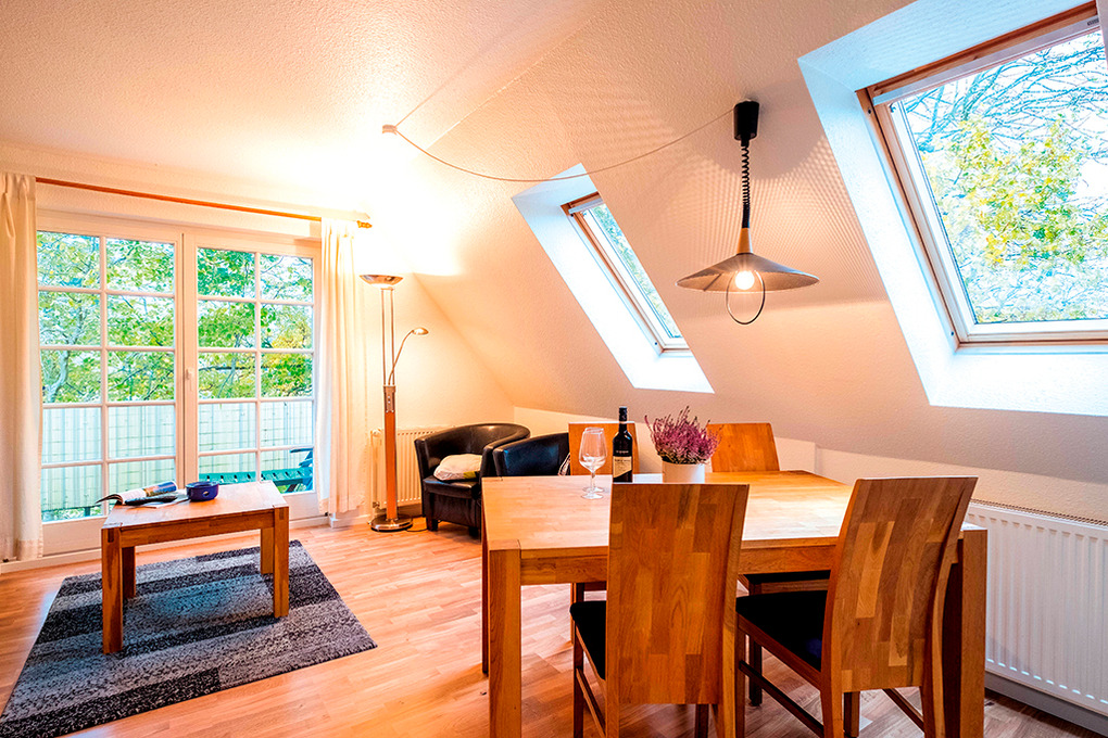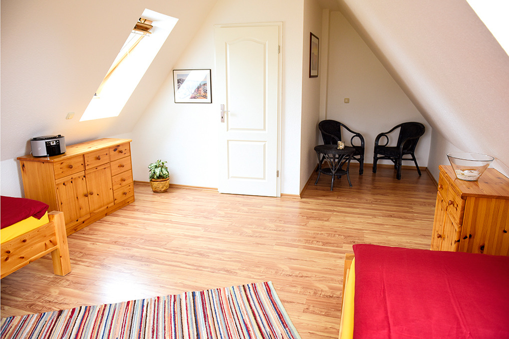 D 67.6118W Wohnung 2-4 Pers.: Großzügige, moderne 3-Zimmerwohnung mit 80 qm Wohnfläche über 2 Etagen, 1. Etage. Wohn-/Essraum mit Couchgarnitur, Sat-TV, DVD, Esstisch, Küchenzeile (Mikrowelle, Spülmaschine). Doppelzimmer. Bad/WC. Flur mit Waschmaschine, Wendeltreppe ins ausgebaute Dachgeschoss (abgeschlossen zum Flur): 2-Bettzimmer mit gemütlicher Sitzecke, Radio/CD. Großer Balkon mit Sitzmöbeln.