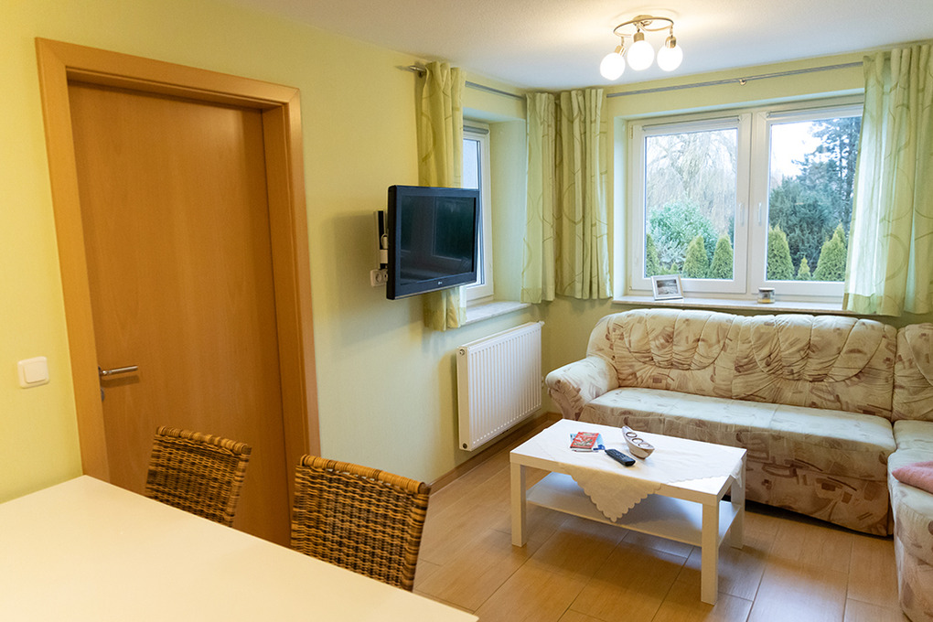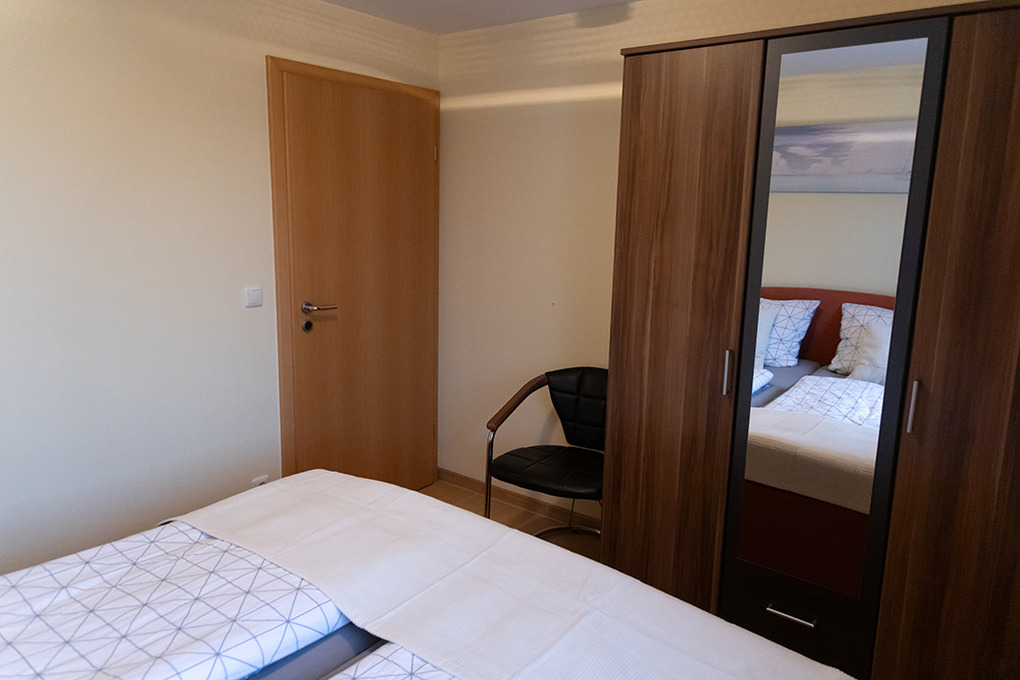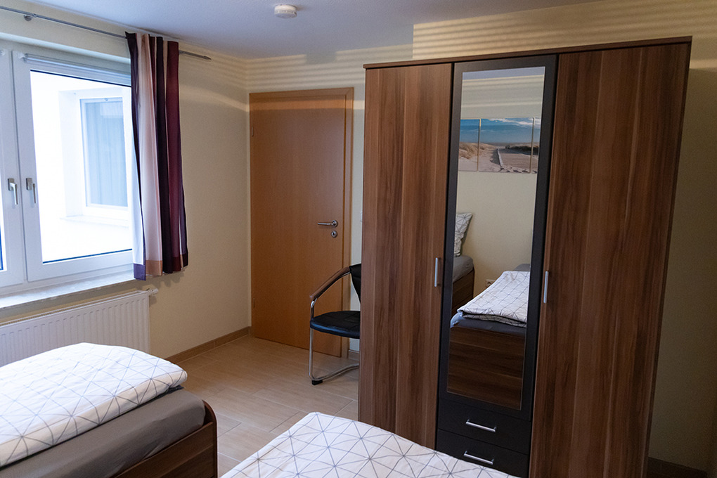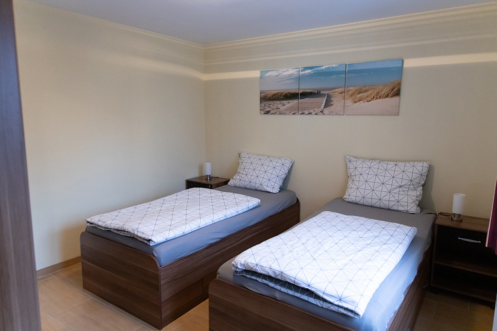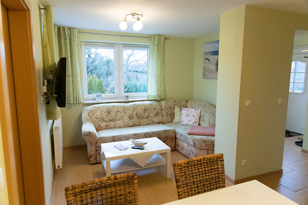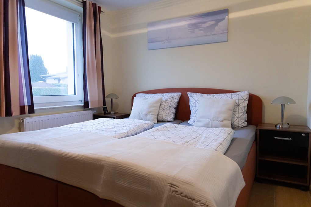 D 20.40 Wohnung 1-4 Pers.: Ideal für Familien mit Hund! Die geräumige Wohnung mit separaten Zugang bietet viel Platz für Zwei- und Vierbeiner. Der Hundestrand ist zu Fuß in wenigen Minuten erreichbar. Zusätzlich gibt es einen Fahrrad-Abstellraum mit E-Bike-Ladestation. (3-Zimmerwohnung, 50 qm Wohnfläche. Hochparterre mit Treppenaufgang. Wohn-/Essraum mit Esstisch, Einbauküche (Ceranfeld, Backofen, Gefrierschrank, Mikrowelle, Geschirrspülmaschine). Doppelzimmer. 2-Bettzimmer. Bad mit Dusche, WC.)