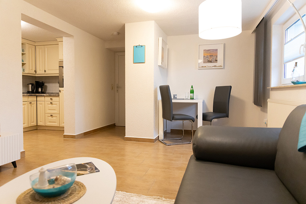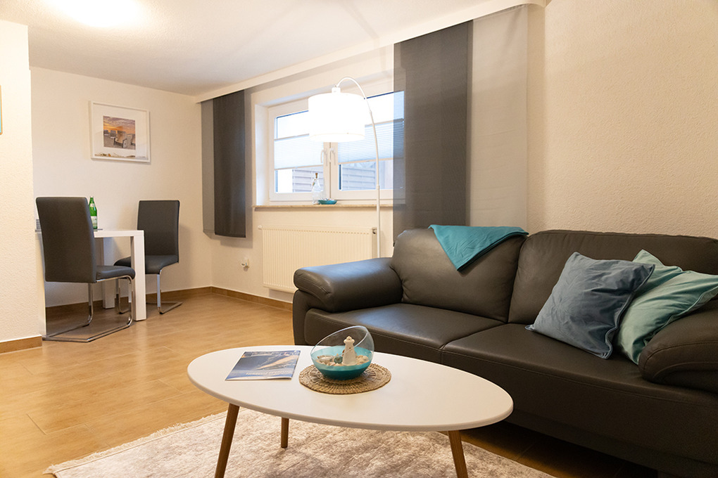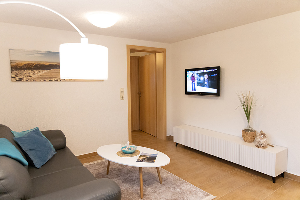 D 20.43 Wohnung 1-2 Pers.: Ein perfekter Mix aus Ruhe und Nähe zum Strand. Diese gemütliches Ferienwohnung ist perfekt für Gäste, die Enspannung in der Natur suchen. Der große Garten lädt zum Verweilen ein, während die ruhige Lage abseits des Trubels für Erhohlung sorgt. Der Strand ist nur 1 km entfernt und mit dem Fahrrad schnell erreichbar - eine eigene Abstellmöglichkeit mit E-Bike-Ladestation steht bereit. (2-Zimmerwohnung, 40 qm Wohnfläche. Souterrain. Wohn-/Essraum mit Esstisch, Einbauküche (Ceranfeld, Backofen, Geschirrspülmaschine). Doppelzimmer. Bad mit Dusche, WC.)