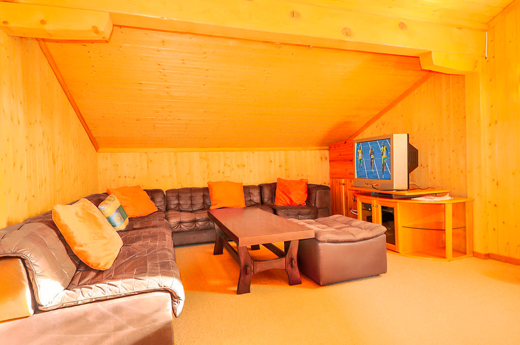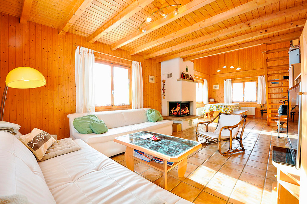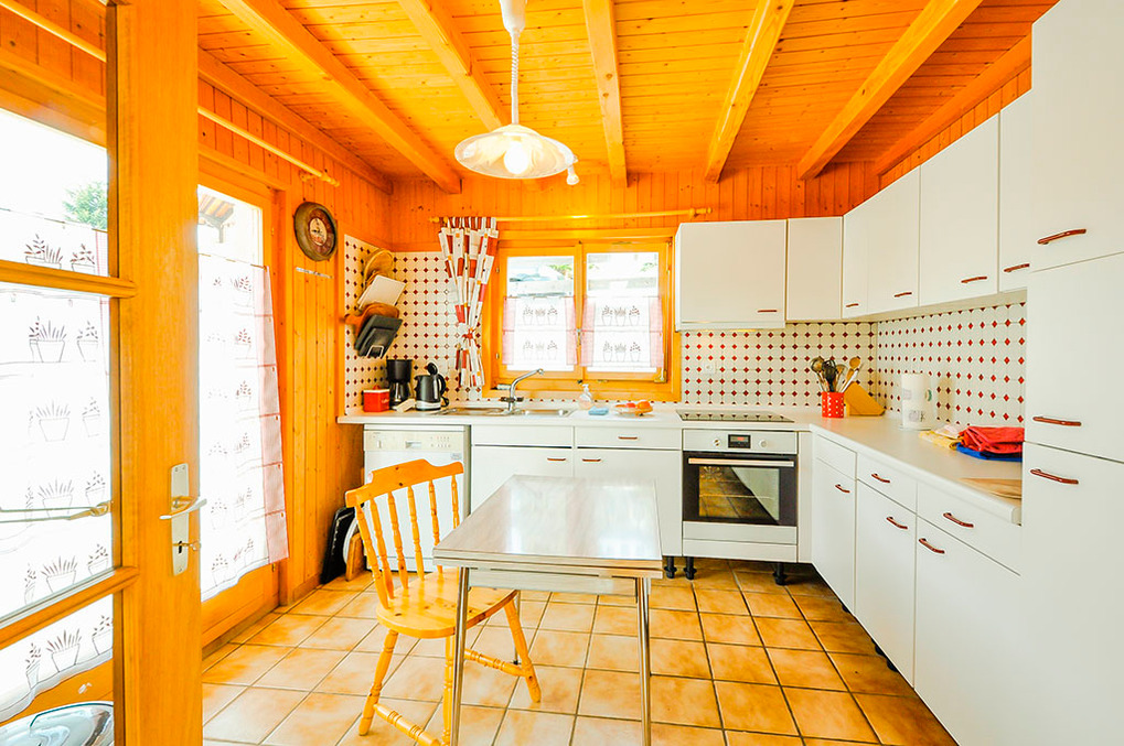 Haus: Sehr schönes Chalet mit Kamin. 6-Zimmer-Haus mit 180 qm Wohnfläche über 3 Etagen. Gemütliches Ambiente durch Holzvertäfelung. Kostenloser Internetzugang über W-Lan. Nichtraucherhaus. Waschmaschine, Trockner, Gefrierschrank. Zentralheizung. 4 Pkw-Stellplätze am Haus.