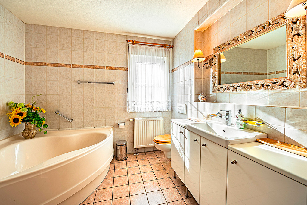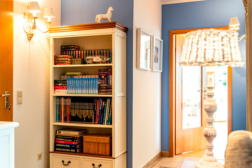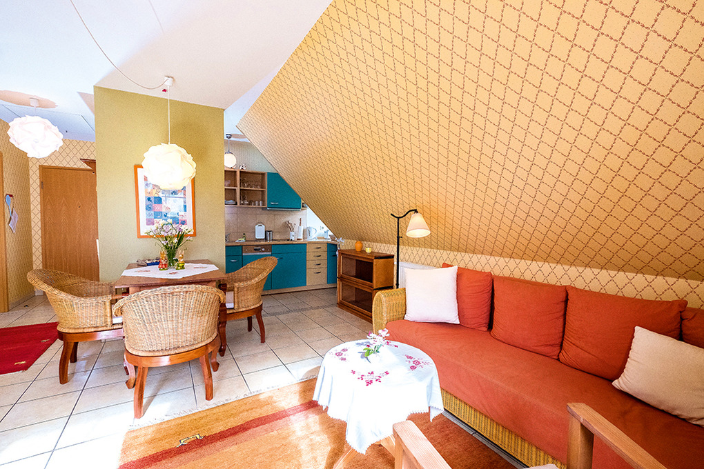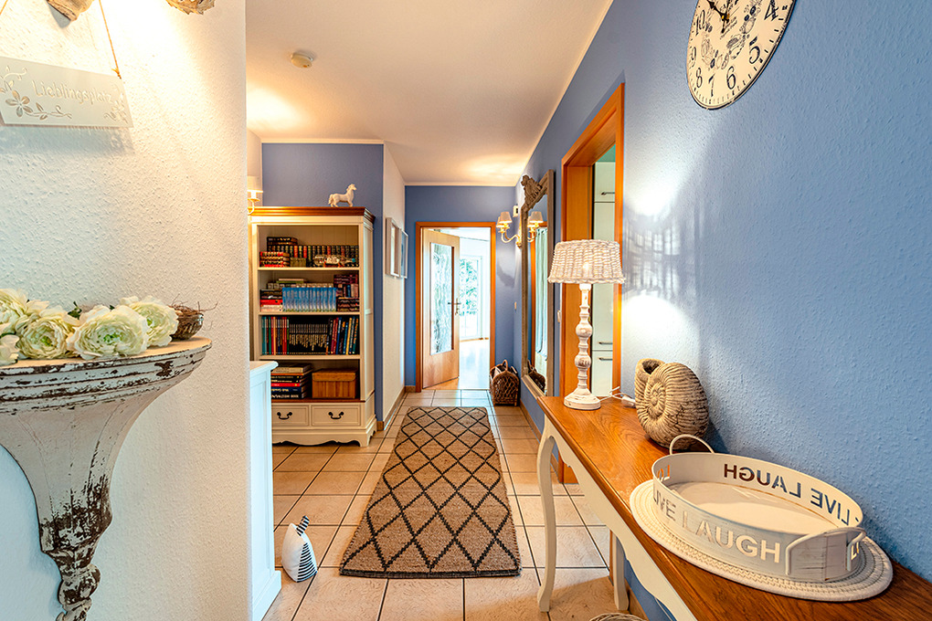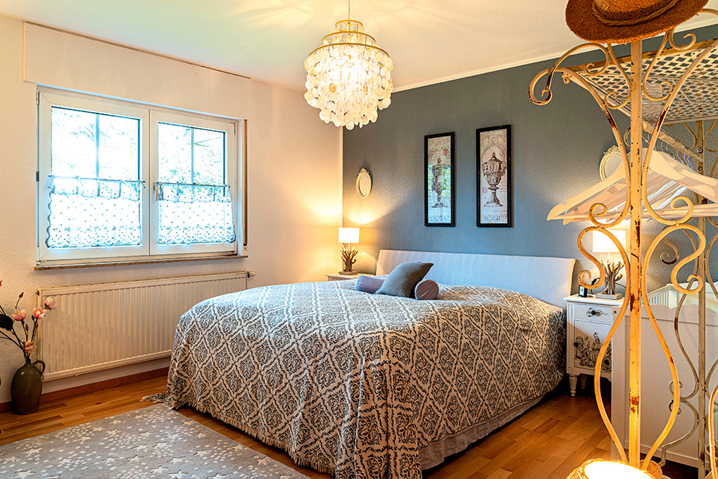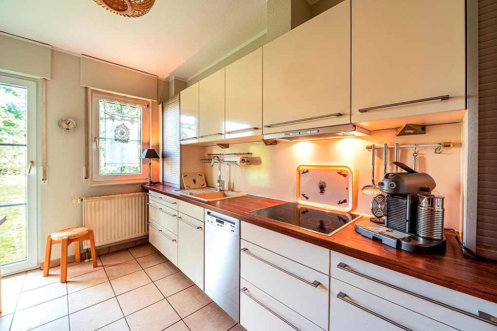 Haus: Schönes Ferienhaus auf einem 600 qm großen Gartengrundstück. Zwei Wohneinheiten, die zusammen vermietet werden. Es ergibt sich ein 5 ½ Zimmer-Haus mit 150 qm zum Alleinbewohnen. Moderne Einrichtung im Landhausstil. Kostenloser Internetzugang über W-Lan. Nichtraucherhaus. Zentralheizung. Liebevoll angelegter Blumengarten mit Gartenteich, Sitzecke und schönem Baumbestand. 2 Garagenstellplätze.