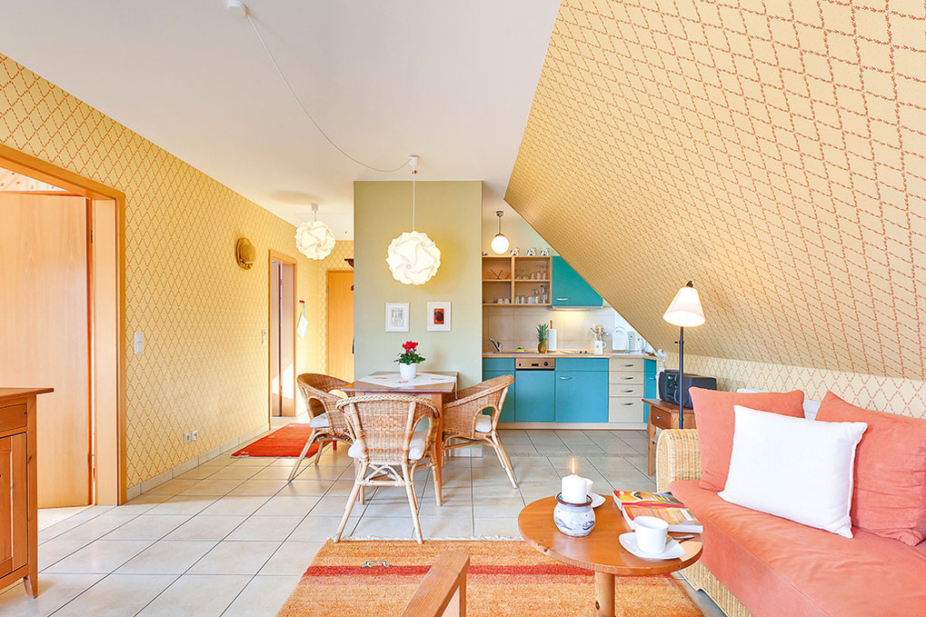 Ort: Glowe. Sehr gute, ruhige Lage. Nur 130 m zum feinsandigen Strand. Ortsmitte 400 m. Bootsverleih am Kurplatz ca. 950m. Erlebniswelt "Splash" mit Schwimmbad, Sauna- und Wellnessbereich sowie Indoorspielplatz 7,5 km.