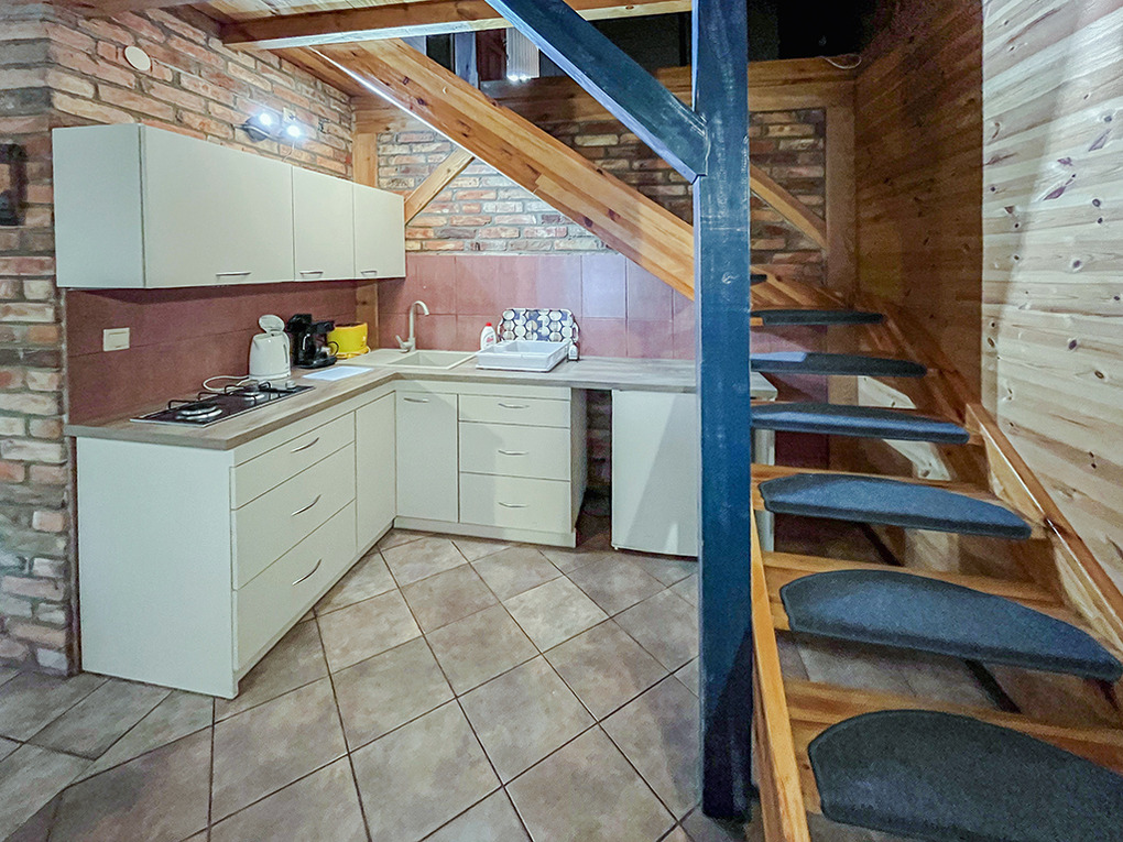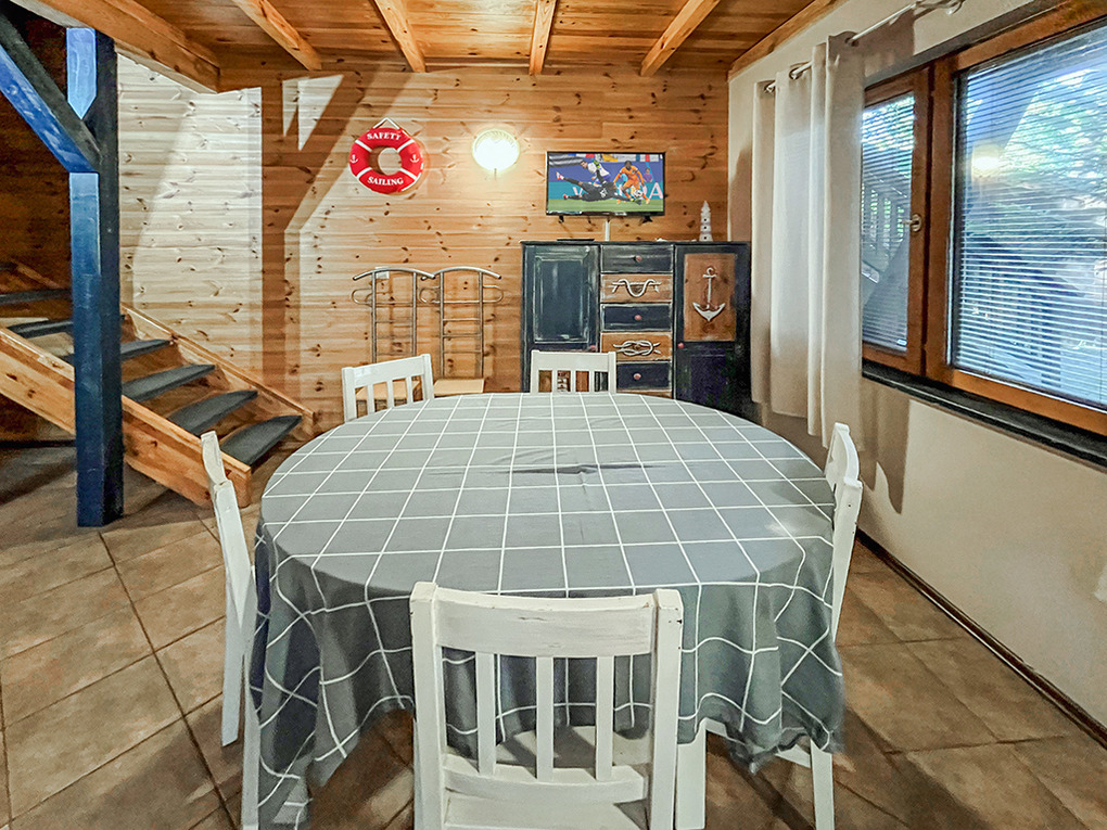 PL 30.47 Ferienhaus 6-10 Pers.: 4-Zimmer-Haushälfte mit 65 qm Wohnfläche über 2 Etagen. Parterre: Wohn-/Essraum mit Eckcouch (Ausziehsofa 2 Pers.) Sat-TV (deutsche Programme), Esstisch, kleiner Küchenzeile (Gasherd 2 Flammen, Abzugshaube). Bad mit Du, Wb, WC. 1. Etage: 4-Bettzimmer mit Balkon. 2 Doppelzimmer mit Waschbecken. Bad mit Du, Wb, WC. Terrasse mit Sitzmöbeln.