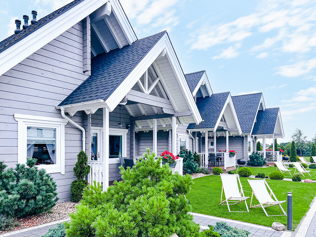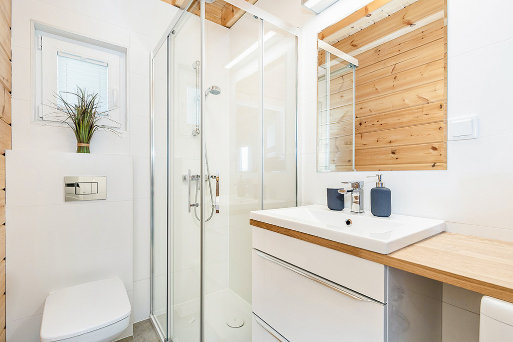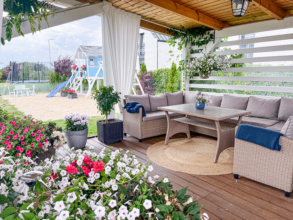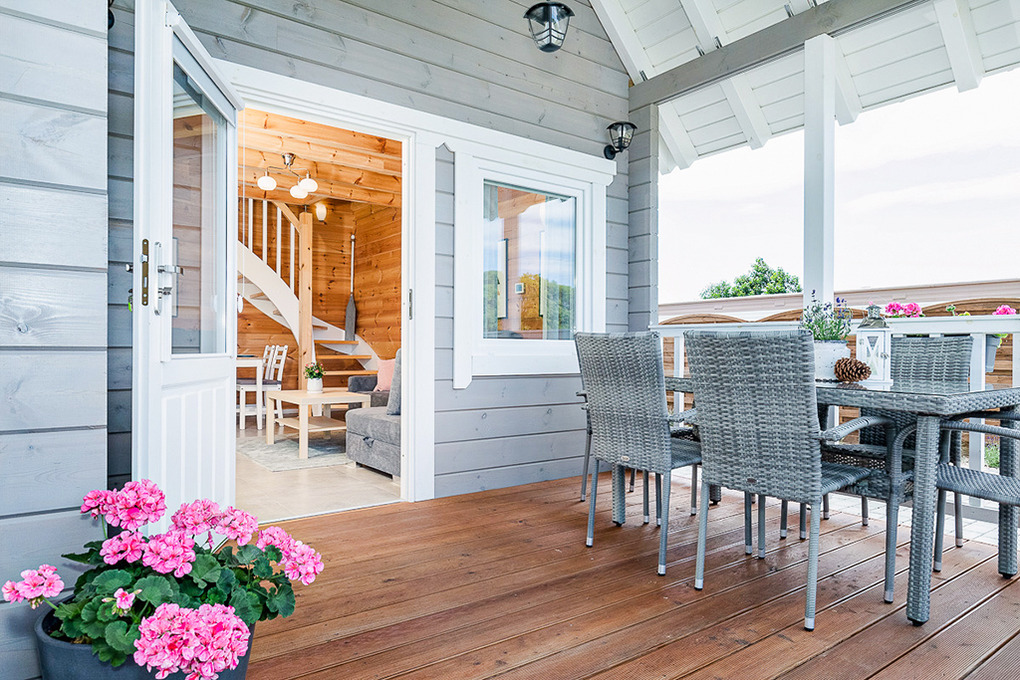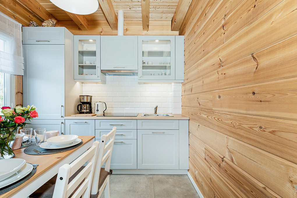 PL 55.36 Ferienhaus 1-6 Pers.: Komfortables 3-Zimmerhaus mit ca. 76 qm Wohnfläche über 2 Etagen. Parterre: Wohn-/Essraum mit Ecksofa (Ausziehcouch 2 Pers.), Smart-TV mit deutschen Programmen, großem Esstisch. Separate Küche mit Esstisch und moderner Küchenzeile (4 Induktionsplatten, Abzugshaube, Tiefkühltruhe 60 l). Bad: Du, Wb, WC, Waschmaschine. Doppelzimmer. Holztreppe in die 1. Etage: Offenes 4-Bettzimmer mit zwei Einzelbetten und franz. Doppelbett. Kleines Bad mit Wb, WC. Terrasse mit Sitzmöbeln, Grill.