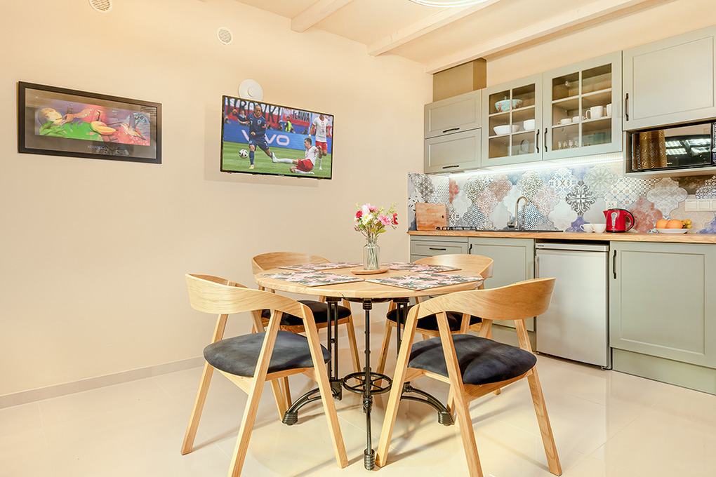 Haus: Zwei komfortable, schöne Doppelhäuser auf einem großen Gründstück. Nichtraucherhäuser. Moderne, geschmackvolle Einrichtung. Waschmaschine. Kostenloses Internet über W-Lan. Fußbodenheizung im Parterre. Überdachte Terrasse mit Sitzmöbeln, Grill.
