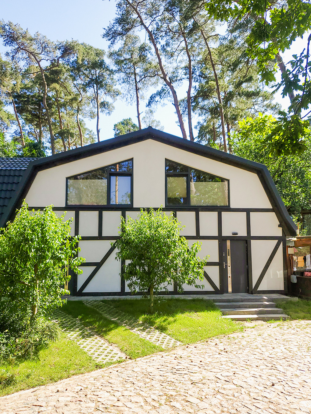 Ort: Pobierowo. Schöne Ferienhaussiedlung in ruhiger Lage. Ostseestrand 550 m. Ortsmitte mit Geschäften, Restaurants 750 m.