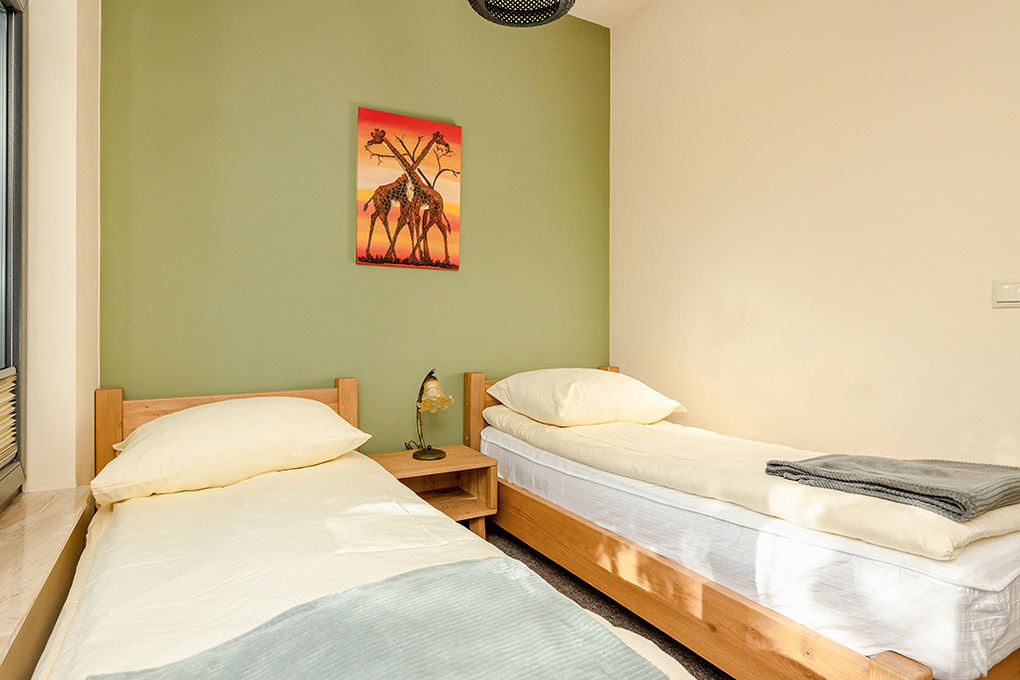 Haus: Zwei komfortable, schöne Doppelhäuser auf einem großen Gründstück. Nichtraucherhäuser. Moderne, geschmackvolle Einrichtung. Waschmaschine. Kostenloses Internet über W-Lan. Fußbodenheizung im Parterre. Überdachte Terrasse mit Sitzmöbeln, Grill.