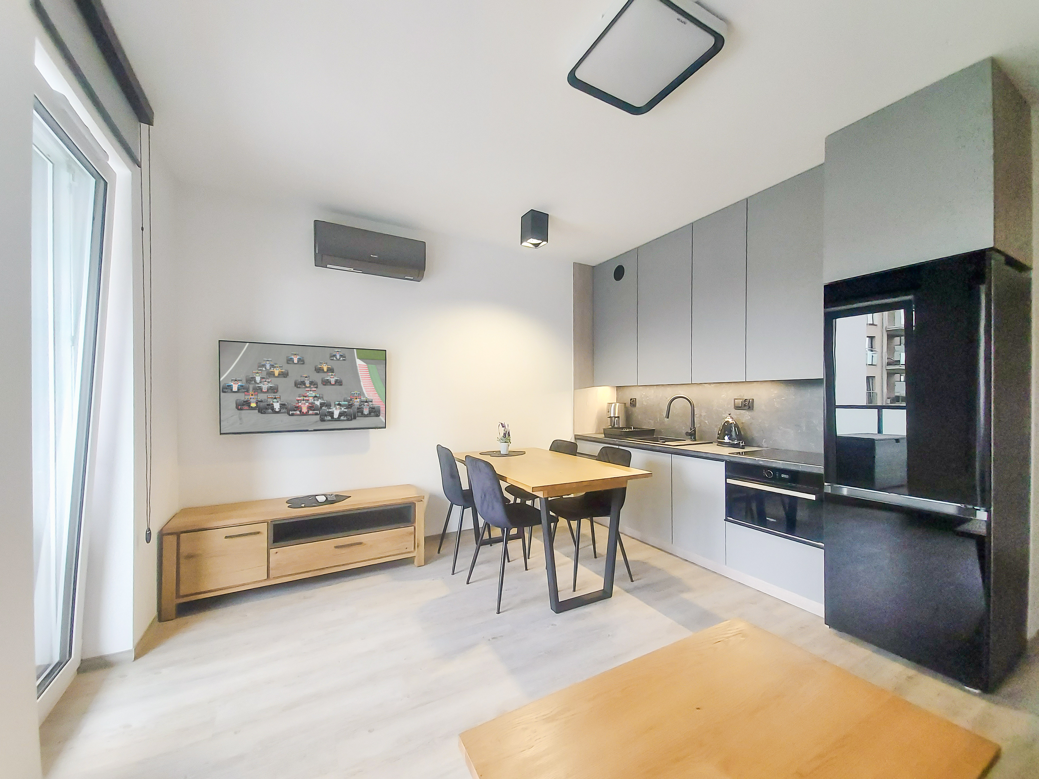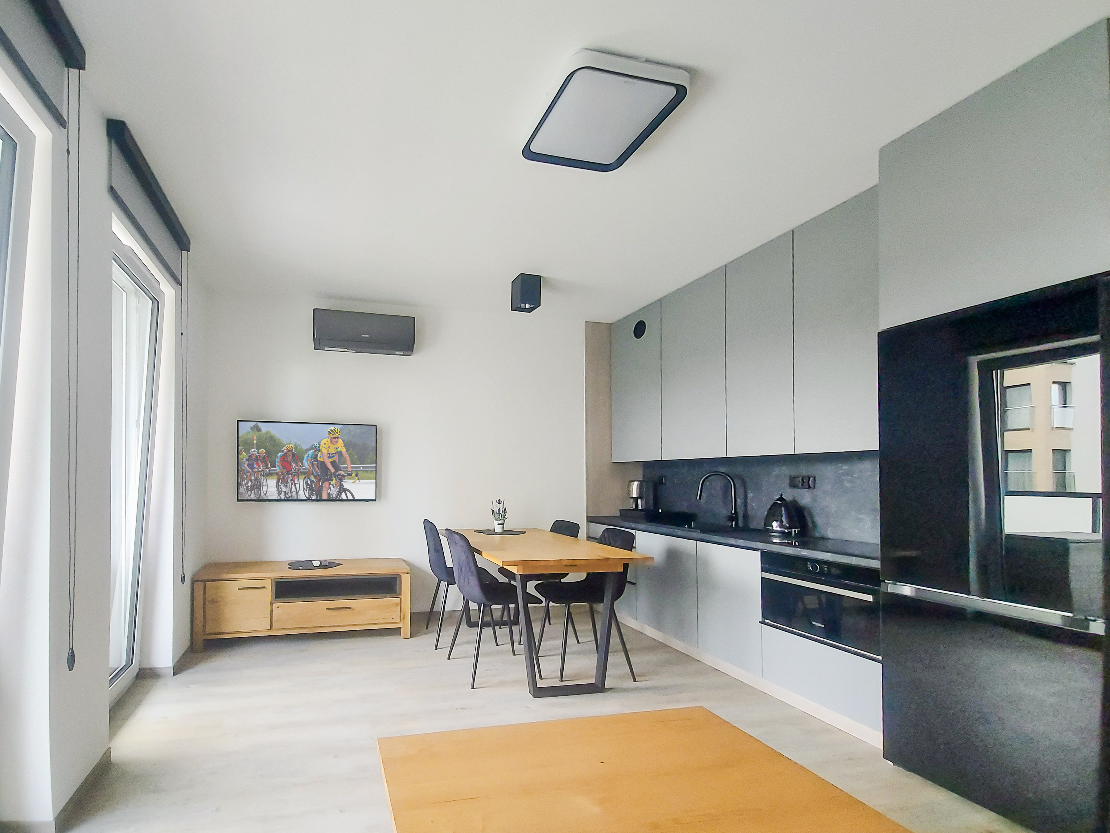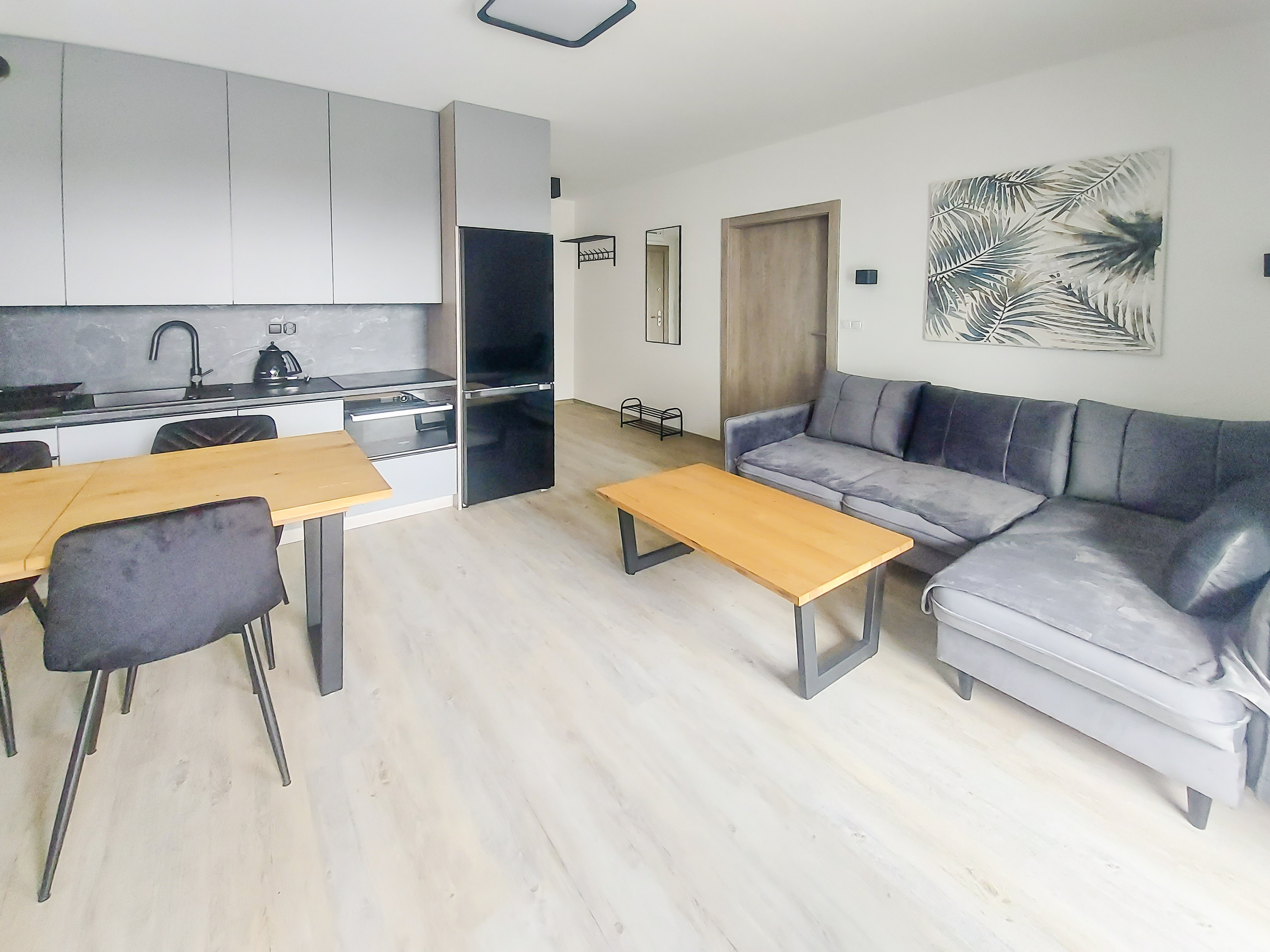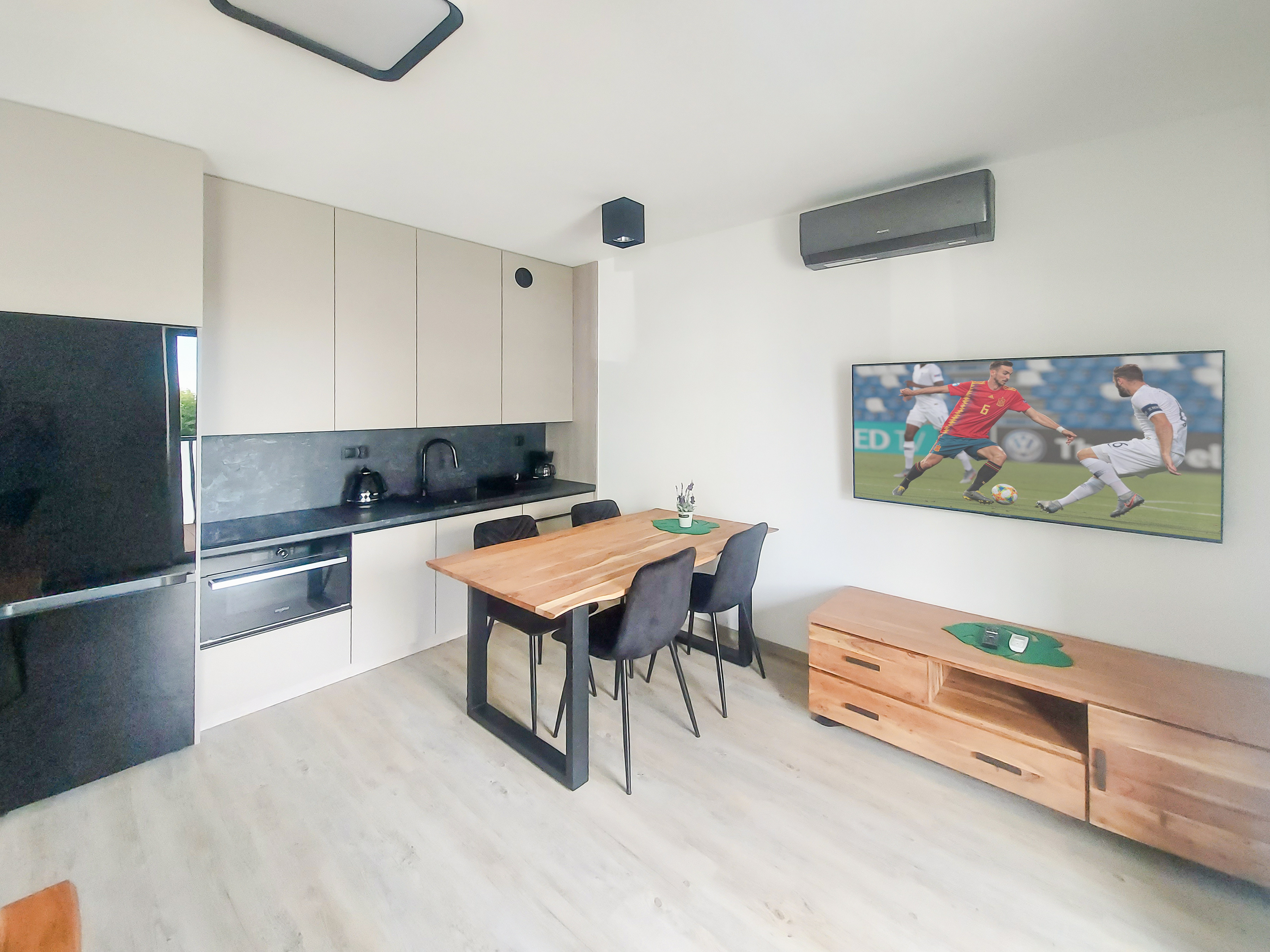 PL 51.18 Wohnung 2-6 Pers.: Geschmackvoll eingerichtete 2-Zimmerwohnung mit 39 qm Wohnfläche, 1. Etage. Wohn-/Essraum mit bodentiefen Fenstern, Couchgarnitur (Ausziehcouch 2 Pers.), SMART-TV, Internet (WLAN), Esstisch, sehr gut ausgestatteter Küchenzeile (4 Platten Induktionskochfeld, Abzugshaube, Backofen, Mikrowelle, Tiefkühlschrank (60 Liter), Spülmaschine). Klimaanlage. Doppelzimmer mit Zugang zum Balkon. Bad: Du, Wb, WC, Waschmaschine. Balkon mit Sitzmöbeln.