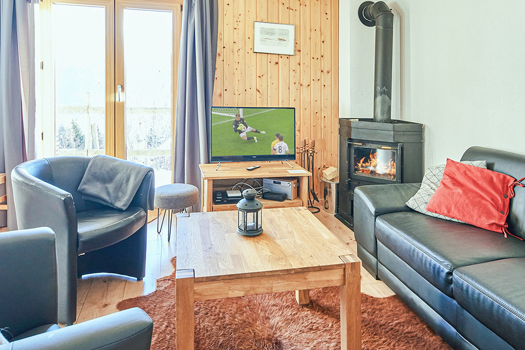 Haus: Schönes Chalet mit Kaminofen. 5-Zimmer-Reihenhaus mit 100 qm Wohnfläche über 2 Etagen. Gemütliche Einrichtung, typisches Chalet-Flair mit schöner Holzvertäfelung im ganzen Haus. Internetzugang über W-Lan. Zentralheizung. Nichtraucherhaus. Balkon, Terrasse mit Sitzmöbeln, schönem Bergblick.