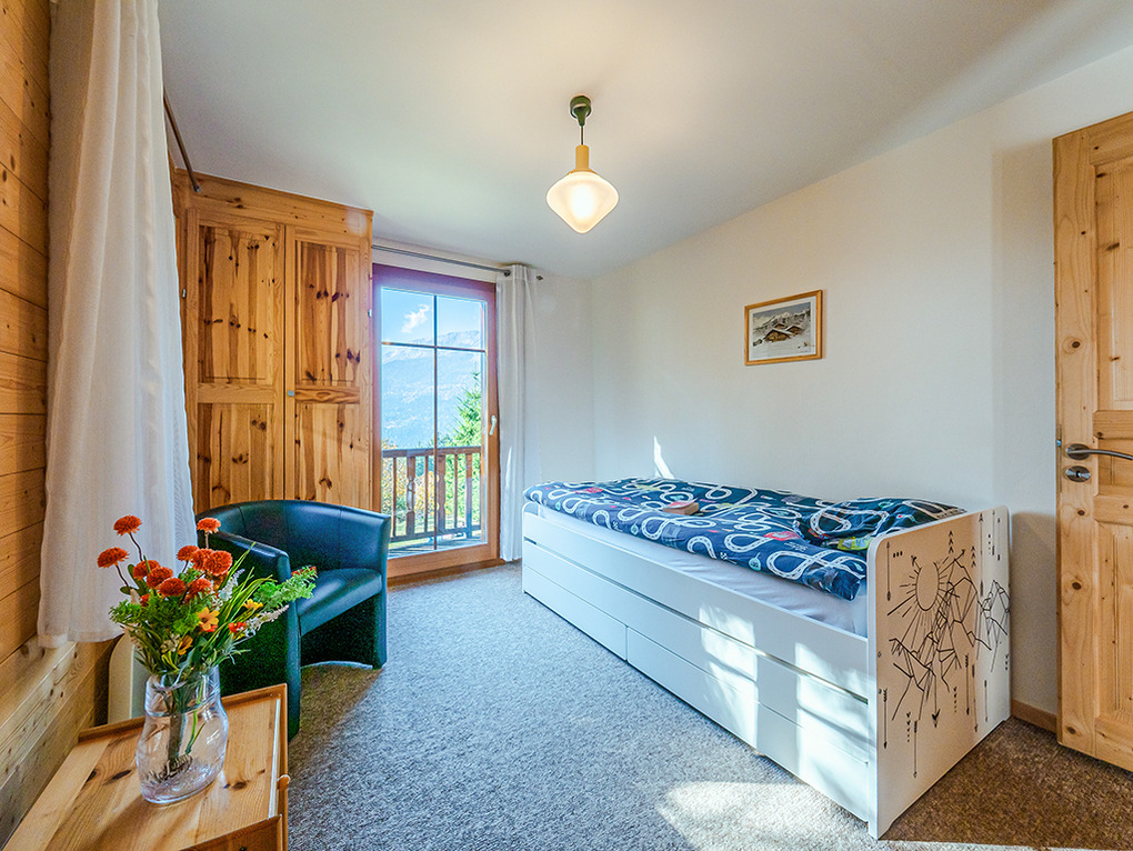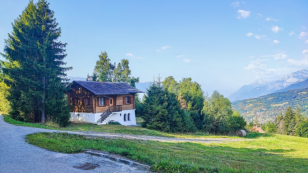 Ort: Crans-Montana. Herrlich ruhige Lage auf 1100 m Höhe unterhalb des Ortszentrums, umgeben von Almwiesen beim Dorf Icogne. Schöner Blick ins Rhônetal und auf die umliegende Bergwelt. Vielfältige Wandermöglichkeiten in der Umgebung. Alaia-Chalet in Lens mit Skate- und Trampolinpark 1 km. Crans mit Supermarkt, Geschäften, Badeseen, Bootsverleih 2,5 km. Gondel ins Höhen-Wandergebiet 4 km. Guter Standort für Tagesausflüge: Kantonshauptstadt Sion mit schöner Altstadt 18 km. Bettmeralp mit Unesco-Weltnaturerbe Aletsch-Gletscher 60 km. Zermatt mit Matterhorn 70 km. Montreux am Genfer See 90 km.