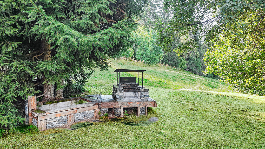 Haus: Schönes Walliser Chalet auf einem großzügigen Gartengrundstück. 4-Zimmer-Haus mit 90 qm Wohnfläche über 2 Etagen. Rustikal-gemütliche Einrichtung. Typisches Chalet-Flair mit schönen Holzbalkendecken, Steinplattenboden im Wohnraum. Internetzugang über W-Lan (max. 4G). Waschmaschine, Trockner. Heizung über E-Radiatoren, Kaminofen. Terrasse mit Sitzmöbeln, Sonnenliegen. Balkon mit Panoramablick in Rhônetal bis Martigny. Schöner Garten mit Grillkamin, eigenem Brunnen, großer Rasenfläche und angrenzenden, Blickschutz bietenden Bäumen. 2 Pkw-Stellplätze am Haus.